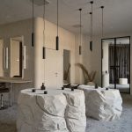 另外这座名为“apos2”的办公室与以前的办公室设计方案全然不同,它增加了许多像多媒体学习中心,设计材料实验室以及供同事们进行交流与分享的必要设施。设计师把这套住宅式办公空间看做是快捷办公室的概念原型,通过使用具有易拆卸特点的结构装配,配合一些简单的方法与L形铁、胶合板和其它基本配件等极其常见的建筑材料,然后在普通的涂装中结束整个步骤。整个设计过程中没有任何效果和额外装置连接在过去的建筑表面上,因此这是个十分灵活的办公空间,十分易于未来搬运及装修等情况的发生。
