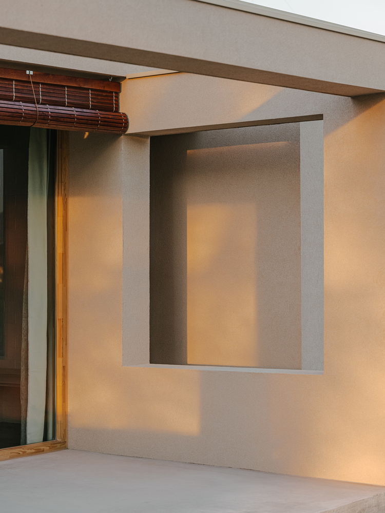 这座房子的设计基于一些基本的前提,其核心是创造两个水平平面,以提供一个有遮蔽的居住空间。宽大的屋顶延伸至围护结构之外,使立面的平面显得不那么厚重。