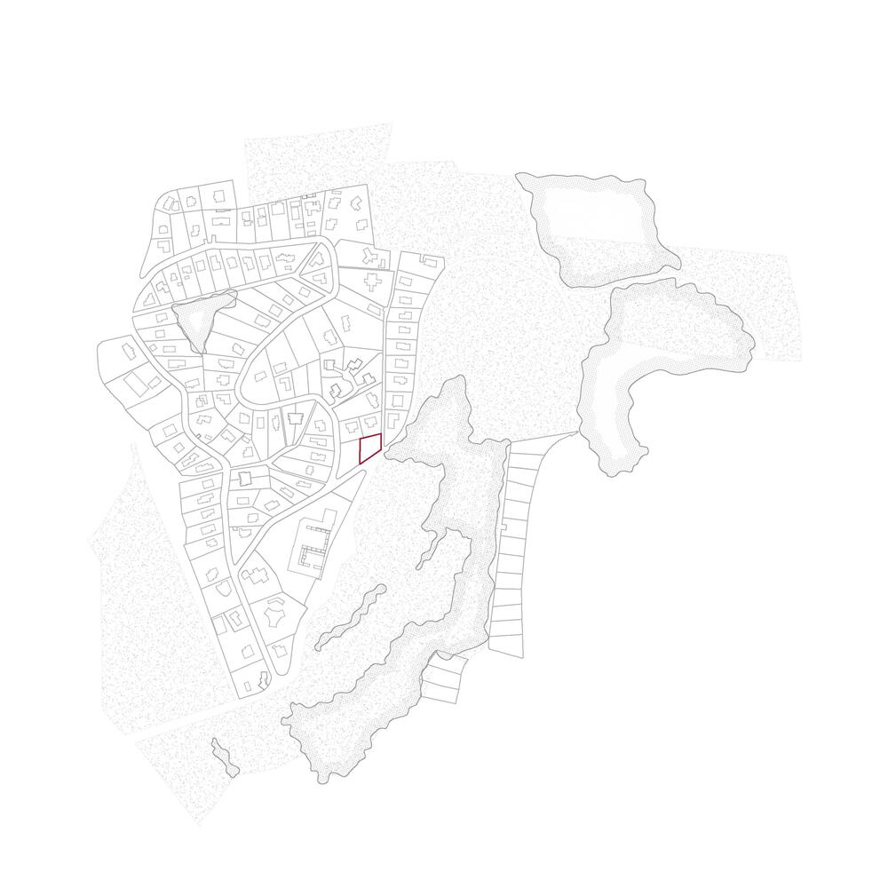 我们所研究的一层别墅设计场地位于一片微微起伏的地块上,略高于街道水平面,处于一个地势显要的位置。它被一些森林残片环绕着,这些森林残片经受住了强烈的人为城市化进程的冲击。在与客户的初次会面中,大家强调了能找到这样一片保存完好的空间是多么难得。尽管这样的角落确实存在,但要找到它们需要仔细搜寻,因为具有这些特征的地块并非每天都会出现在我们的工作室面前。