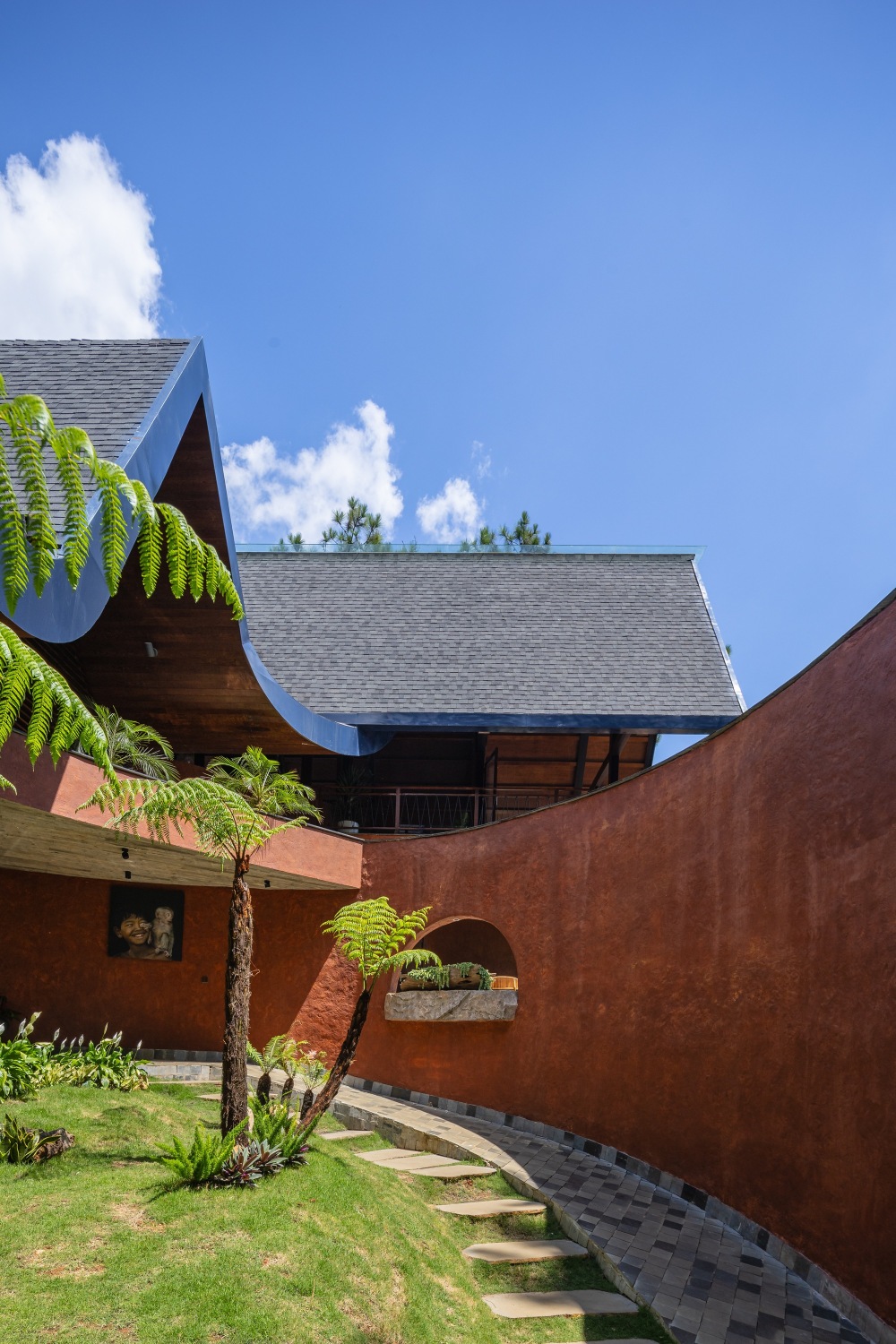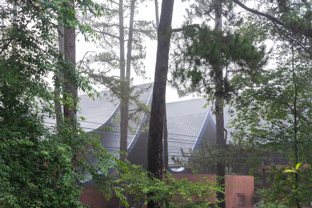 在越南芒登地区的原生松林间,MA.DE餐厅设计如自然生长般隐匿其中。这座占地1000平方米的复合型服务空间,以“文化本真性”为设计内核,将西原高地的地域基因与本土身份认同,植入每一处空间细节。设计师以越南传统建筑“荣屋”为灵感原点,摒弃复刻式设计,用错落尖顶、在地材质与框景手法,在薄雾缭绕的高地间,打造出一座“与自然共生、与文化共鸣”的建筑典范。