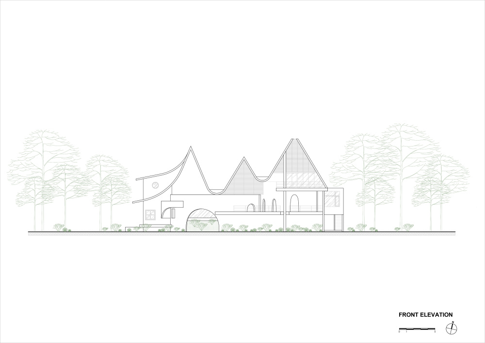 MA.DE小馆的设计命题,始于投资方的核心愿景:打造一处“超越商业功能”的复合型空间,让地域文化价值与本土身份认同成为空间的灵魂。这一需求让设计团队跳出了“商业空间=高效实用”的单一逻辑,将“对土地与历史遗产的尊重”贯穿全程,最终确立“以文化叙事为线索,以自然体验为载体”的设计方向。场地的自然特质为设计提供了天然养分。三面被原生松林环抱的地理位置,薄雾缭绕、雨水丰沛的气候特征,以及凉爽宜人的高地环境,共同赋予场地“宁静而神秘”的独特氛围。设计团队没有试图改造这份自然禀赋,而是以“倾听者”的姿态,让建筑成为“连接文化与自然的桥梁”——既呼应西原高地的建筑传统,又融入松林环绕的场地肌理。