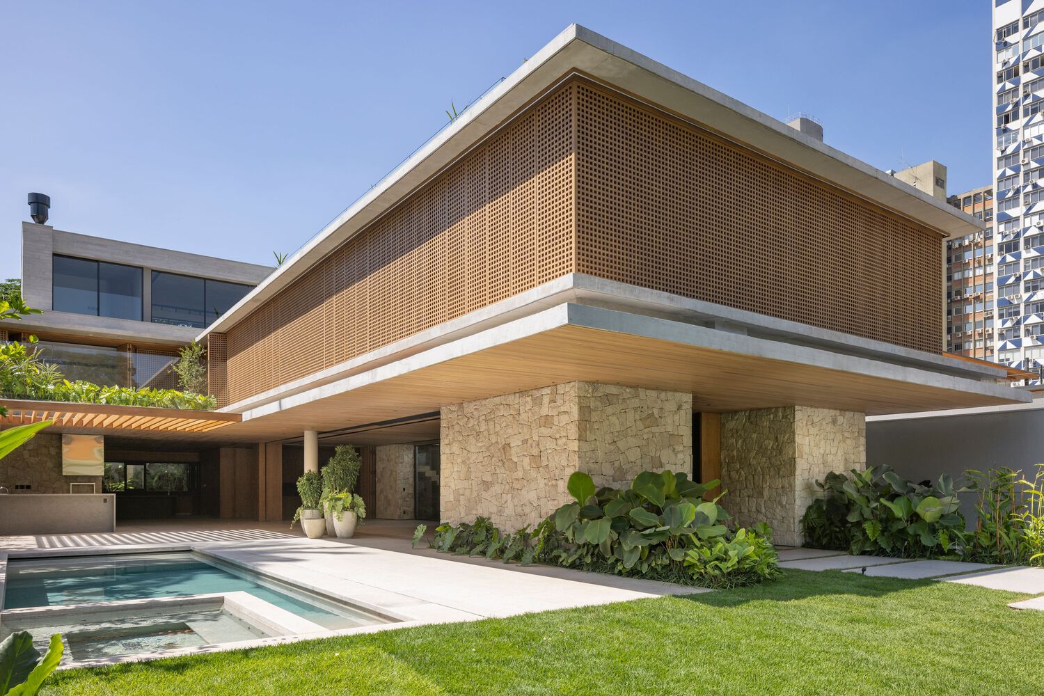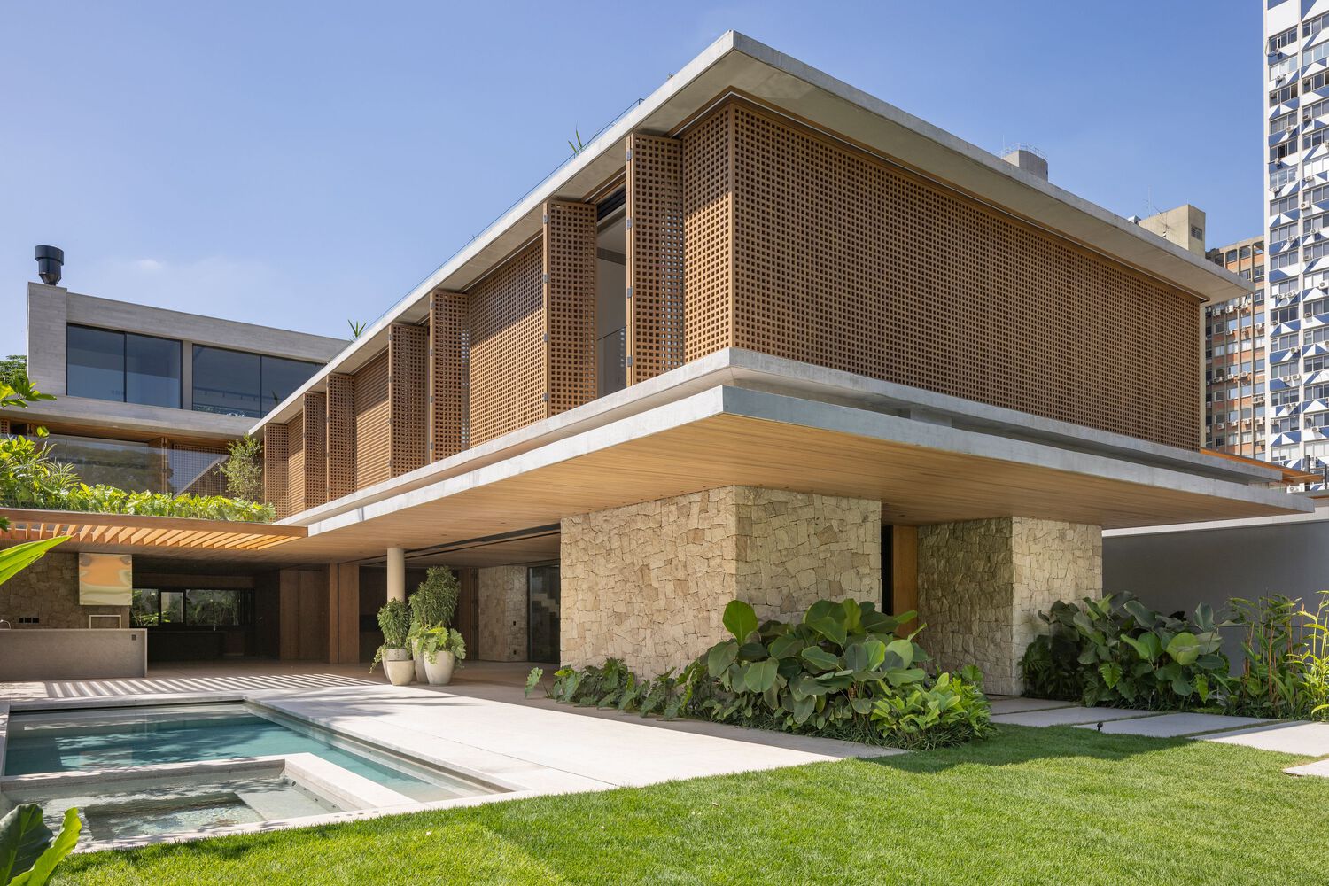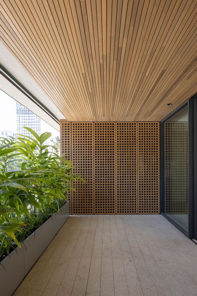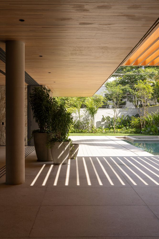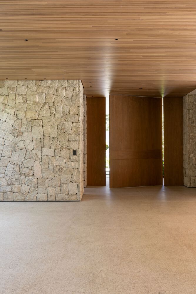 项目精心挑选了伊塔乌纳花岗岩、莫莱多石和质地柔软的木材等天然材料,营造出优雅宜人的氛围。在屋顶的设计上,团队做出了一个大胆的决定,摒弃传统的石膏天花板,采用裸露的混凝土,传达出一种轻松现代的美学风格,这与材料的永恒质感以及巴西的建筑理念相契合。
