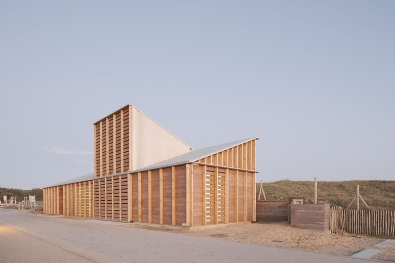该兼卫生间更衣室垃圾房一体的木屋设计是玛格南建筑事务所(Magnum Architectes)在法国西部滨海布雷蒂尼奥勒(Brétignolles-sur-Mer)的沙丘地带完成了一座小型海滨设施 —— 其设计旨在应对生态保护区域内的季节性旅游压力。