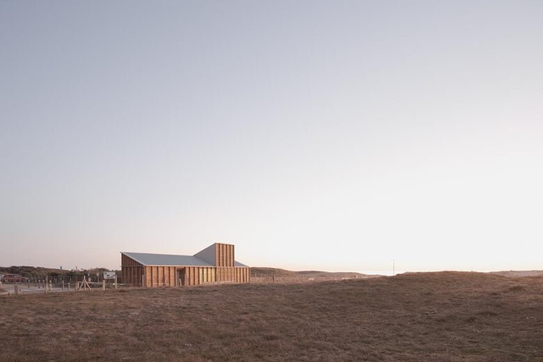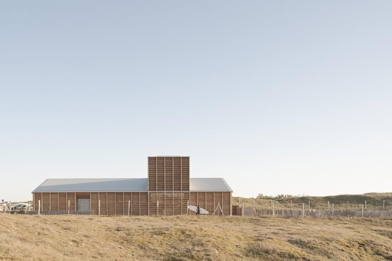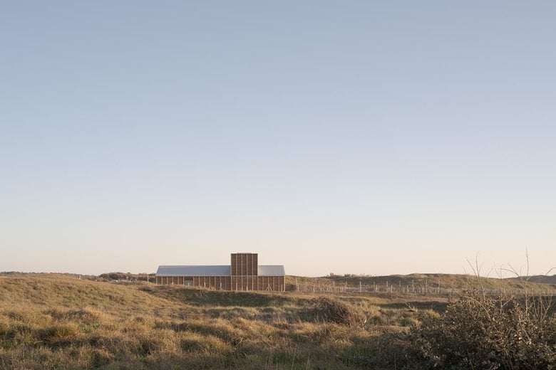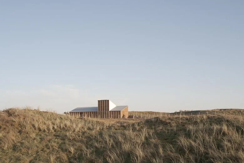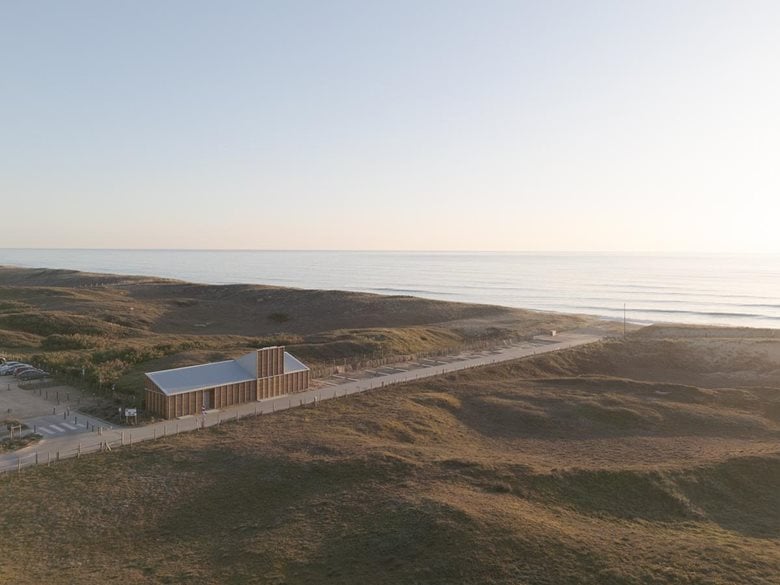 滨海单坡屋顶的生态缝合术会呼吸的沙丘公共更衣卫生间设计