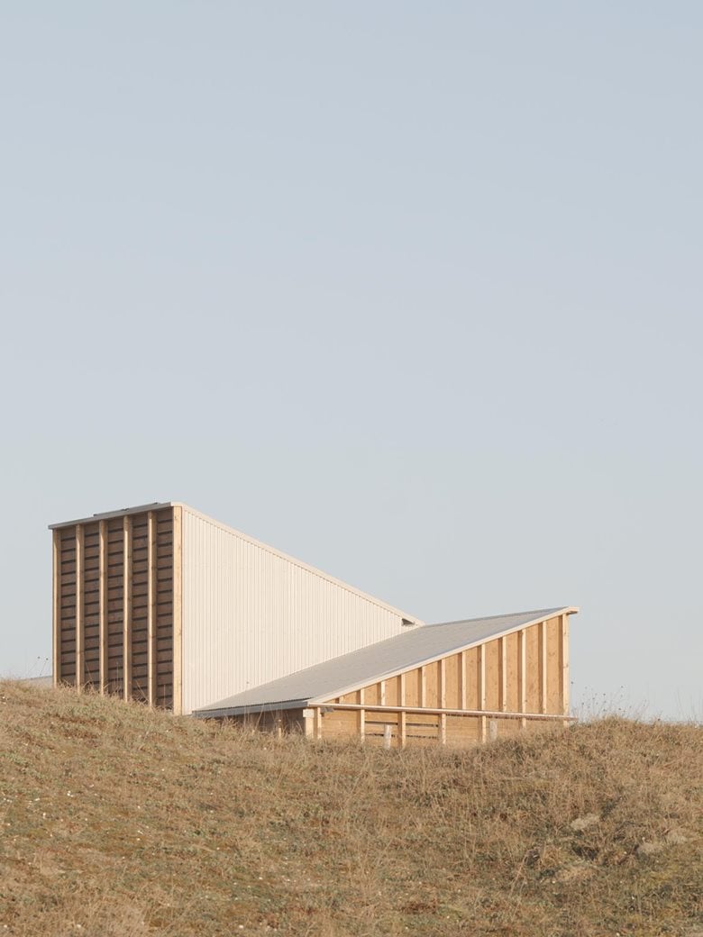 该项目将三大核心公共功能(更衣室、卫生间和废弃物管理)整合至一座低矮建筑中,其所在区域属于 “自然 2000”(Natura 2000)保护带。场地面临多重监管限制,包括法国国家森林办公室(ONF)的监管和严格的环境保护协议。对此,建筑师提出了一种极简且可还原的结构方案,以限制施工和运营期间对环境的干扰。