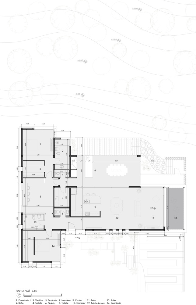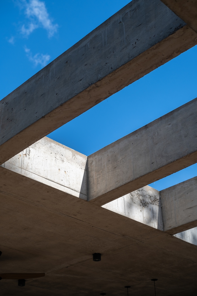 场地地形的显著特点是地块两端存在明显高差,这一自然条件自然而然地催生了 “抬高主楼层” 的设计思路 —— 主楼层高于地面,下方空间则可用于停车与后勤区域。这一结构性设计决策成为了整个项目的起点。
