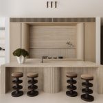 景观草坪的两侧是一个休闲的休憩区,配有雕刻出来的体积,与场地轮廓并列。在天然的热塑木和柔软的石灰石的装饰下,这个空间提供了一个实用而平静的休闲场所,使人免受刺眼的阳光的影响。赫姆的房子是对它以前的自我进行了改头换面,重新塑造了住宅的结构和表面共存的方式–从外墙的巨大体量到它在适度材料上的雄心勃勃的细节,赋予它新的生命。就像缝合的行为一样,The Hem House由相互缝合的空间组成,最终形成一个整体的织物。