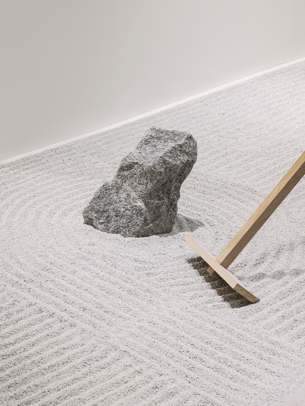 展架、隔断采用 “浅木色原木”,保留木材的 “天然纹理与色泽”,未做过多修饰,如同侘寂美学中 “对自然之物的珍视”。木材的 “温润感” 与 “粗糙肌理”,传递出 “时光沉淀” 的韵味,顾客触摸木材时,能感受到 “自然材质的本真温度”,契合侘寂 “质朴、本真” 的核心; 展区内的 “枯山水石材”,选取 “形态不规则、表面带有天然纹理” 的原石,放置在 “白沙铺就的地面” 上,模拟 “日式枯山水” 的意境。石材的 “野性形态” 与白沙的 “宁静柔和” 形成 “刚柔对比”,既传递出侘寂美学 “接纳自然残缺” 的态度(石材的不规则是 “自然的残缺之美”),又通过 “枯山水” 的场景,营造出 “宁静致远” 的空间氛围。隔断采用 “亚麻纱帘”,亚麻的 “粗糙肌理” 与 “半透明质感”,让空间在 “分隔” 的同时保持 “通透感”,如同侘寂美学中 “虚实相生” 的意境。纱帘的 “柔和垂坠感”,柔化了木材、石材的 “硬朗感”,使空间在 “自然本真” 中透出 “细腻温情”,契合茑屋书店 “文化与生活融合” 的调性。