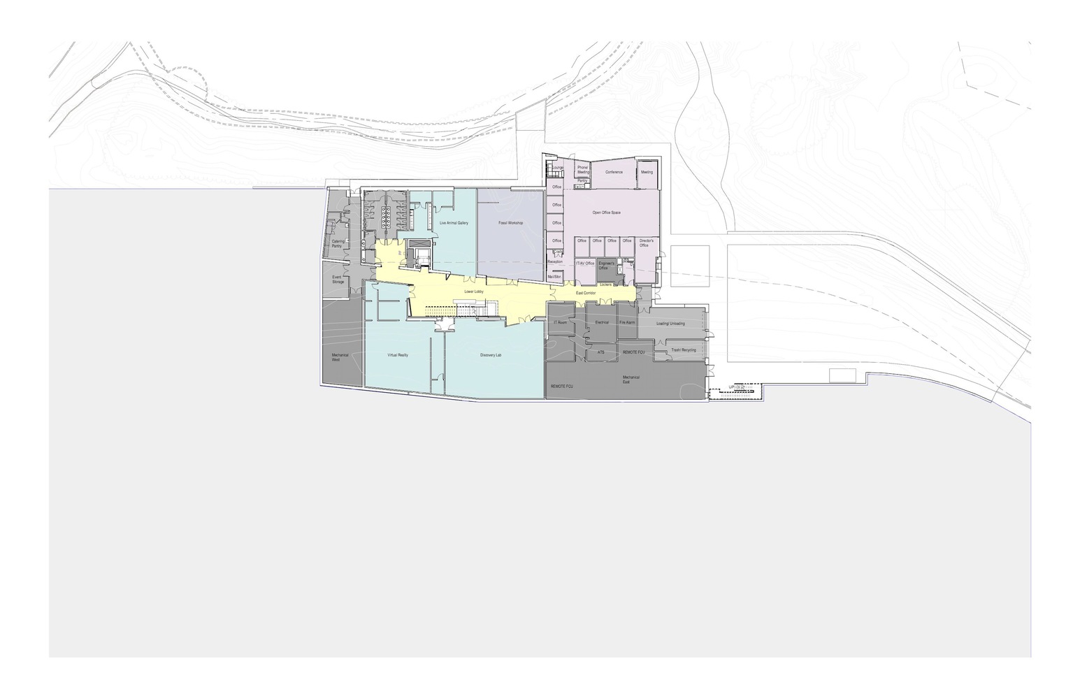 博物馆的体验被设计成一次旅程,引导游客走过自然小径、参观沉浸式展览并进行亲自动手的化石挖掘活动。这个采石场拥有数千块白垩纪晚期的化石,为游客提供了参与实时研究的独特机会。除了化石挖掘,游客还可以探索一个以恐龙为主题的游乐场,其中有一个翼龙攀爬结构。景观设计公司 SEED Design 参与合作,将这些元素无缝融入自然环境中。