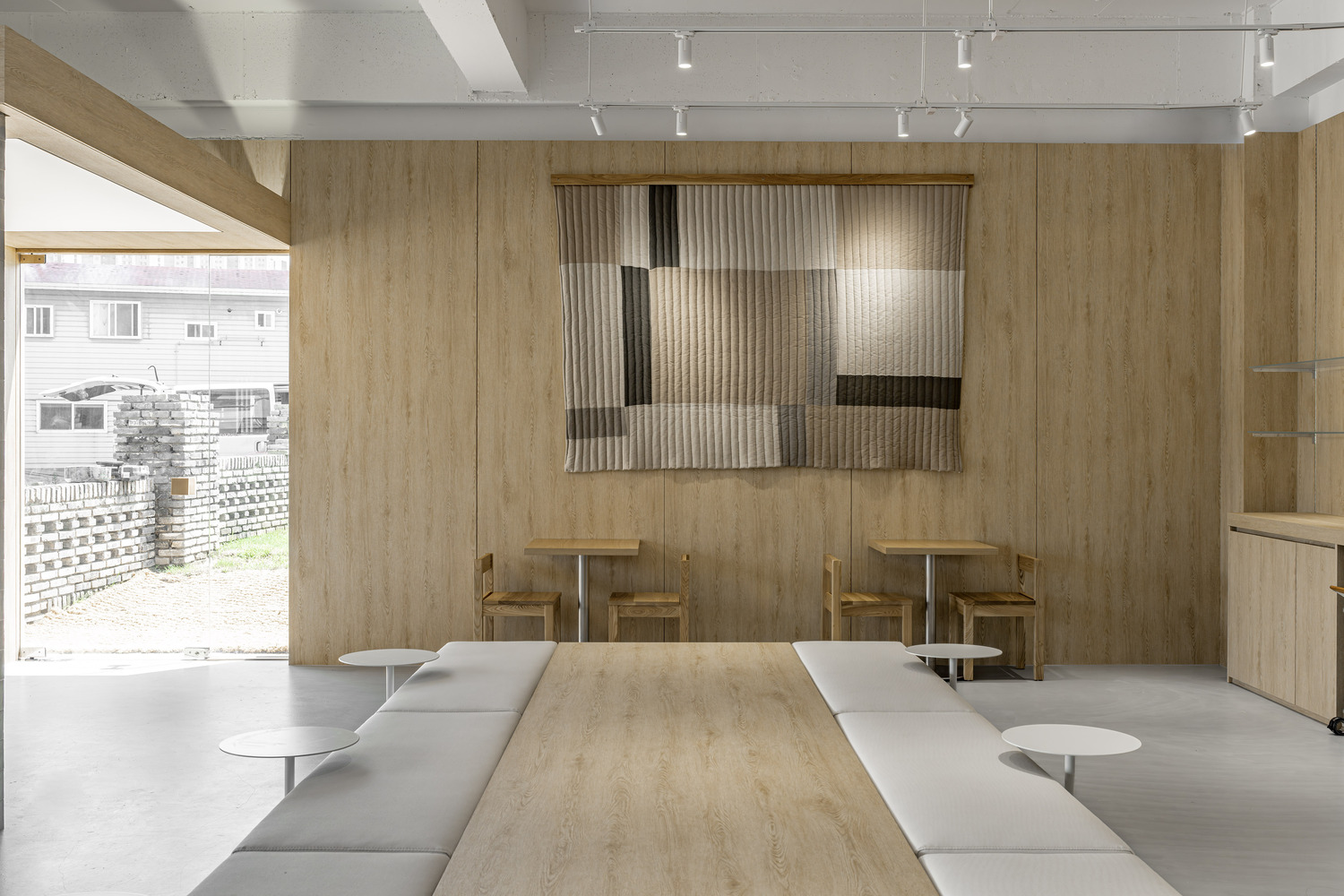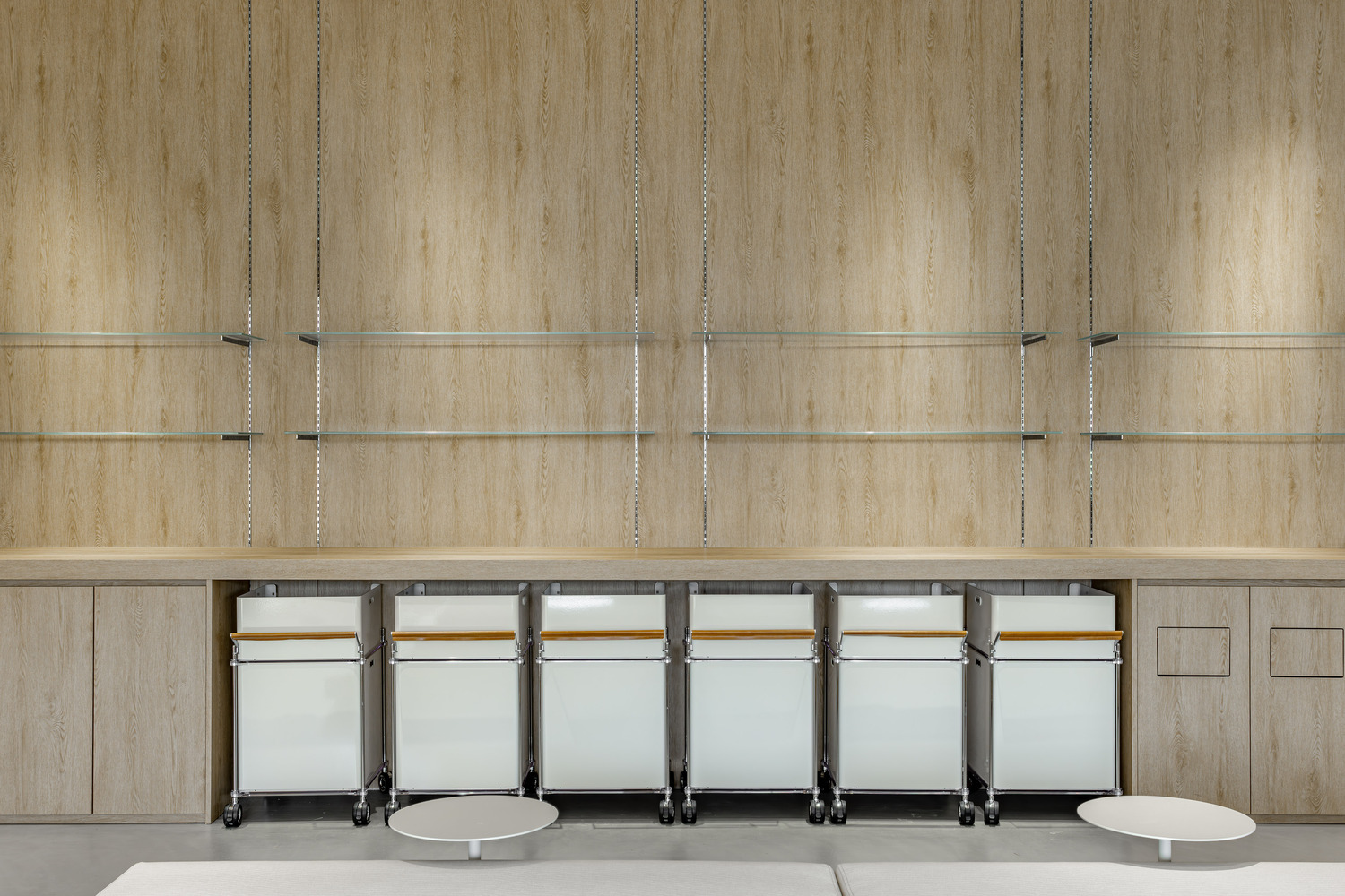 在这个视觉上静谧低调的木色调空间里,我们悬挂了由同色系面料制成的拼布纺织品。每一件拼布作品都经过精心制作 —— 我们想象着那些能为人和宠物带来舒适与温暖的色彩、质地和图案。这体现了我们的真诚用心:以体贴和细腻的考量打造一个共享的环境。