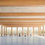 在画廊的地板上有一个向礼堂开放的阅读区。与之相对的是朝向前院的运动区域,它可以通过移动隔断延伸到门厅。这里宽敞的空间就像一扇“通往村庄的窗户”,让人们可以看到彼此之间的视觉关系。