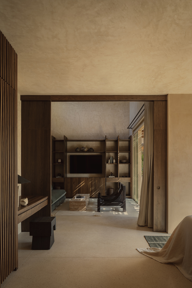 建筑饰面采用天然材料与色调,如木材、石灰岩、洞石和楚克姆。空间布局遵循被动式设计原则,呼应了该地区的乡土建筑风格。在纳博亚酒店,设计追求简洁的解决方案、倡导慢生活的氛围,以及能激发感官互动的细节。