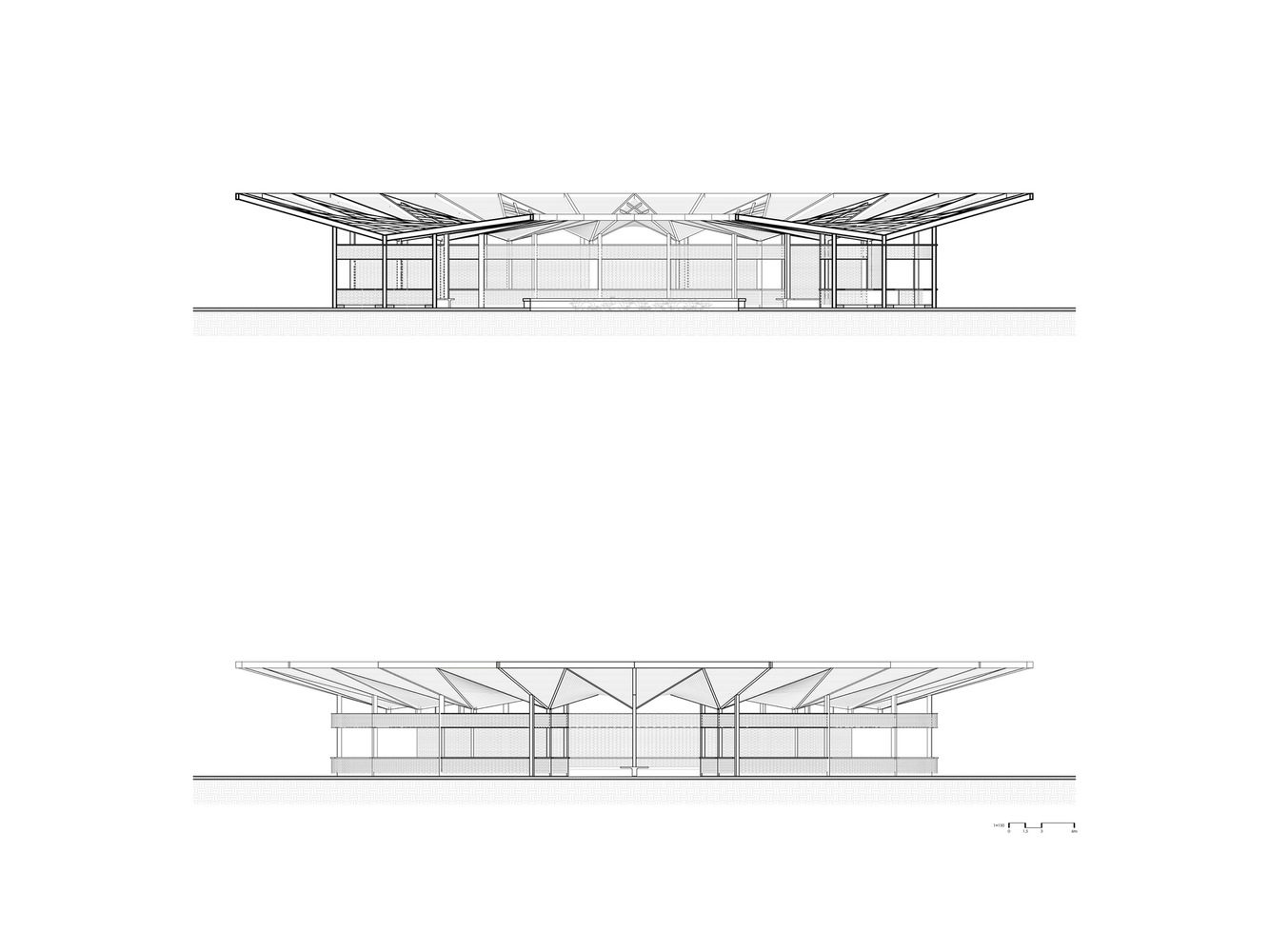 该项目主题使我们能够在工作室内部推进持续的亲生物设计议程,既包括自上而下的方法 —— 规划总体规划和过渡区域,也包括自下而上的视角 —— 关注公园内用户对自然的体验。此外,我们继续利用参数化设计工具来促进形态发现方法,使我们能够创造出既具有美学冲击力又结构高效的结构。这一过程导致了各种类型的发展,包括针对建筑物特定功能定制的双曲抛物面的改编,所有这些都具有圆形的占地面积,但采用了独特的结构解决方案。