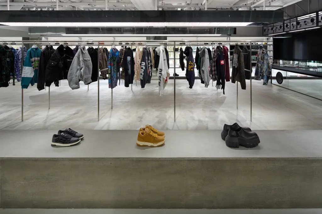 该潮牌店设计作为融合国内外时尚与街头文化的潮流标杆,NUBIAN 在日本的第四家分店 —— 札幌 PARCO 店,以 265 平方米的开阔空间,完成了对街头潮流的全新诠释。由 TORAFU ARCHITECTS 操刀的室内设计,在保留品牌标志性元素的基础上,巧妙融入札幌地域特质,通过空间分区、材质碰撞、光影运用与声学营造,打造出一处兼具粗犷街头感与精致潮流感的沉浸式购物场域。店铺坐落于札幌 PARCO 二楼,横跨主楼与附属建筑的特殊格局,被设计师转化为独特的空间优势,构建出 “引导 — 核心 — 延伸” 的流畅叙事动线。