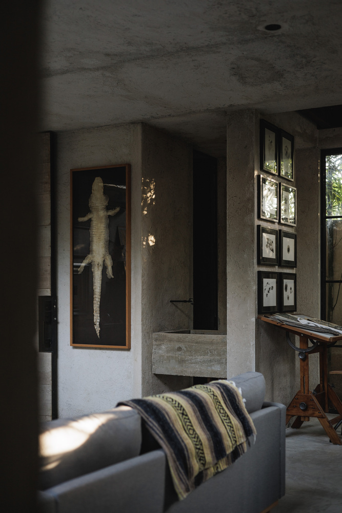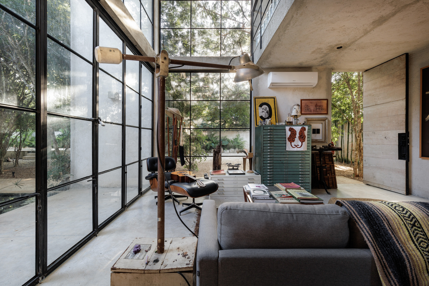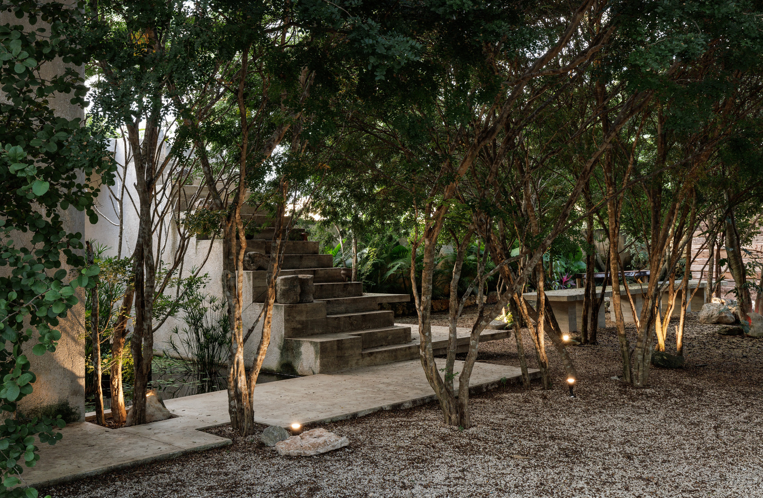 中央有一棵树的镜面水池为空间带来清凉与宁静。工作室内部被规划为藏品存放地,这些藏品滋养着艺术与叙事灵感。空间兼具休憩与冥想功能,其灵活的结构既能适应放松时刻,也能满足创意活动的需求。总体而言,这座建筑项目是内省、创作与自然连接的交汇点 —— 在这个独特且富有个性的环境中,人们可以尽情体验、探索与汲取灵感。