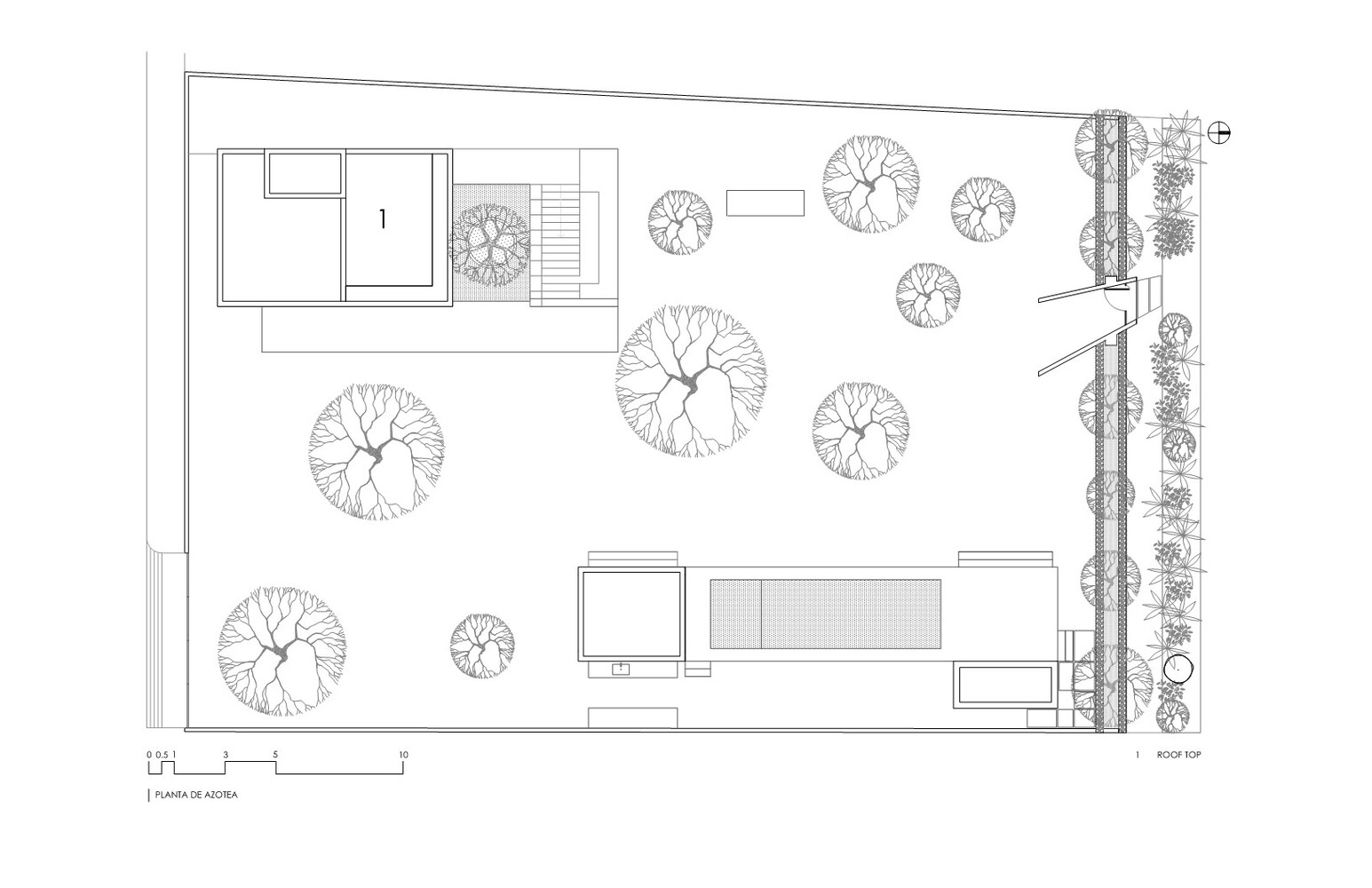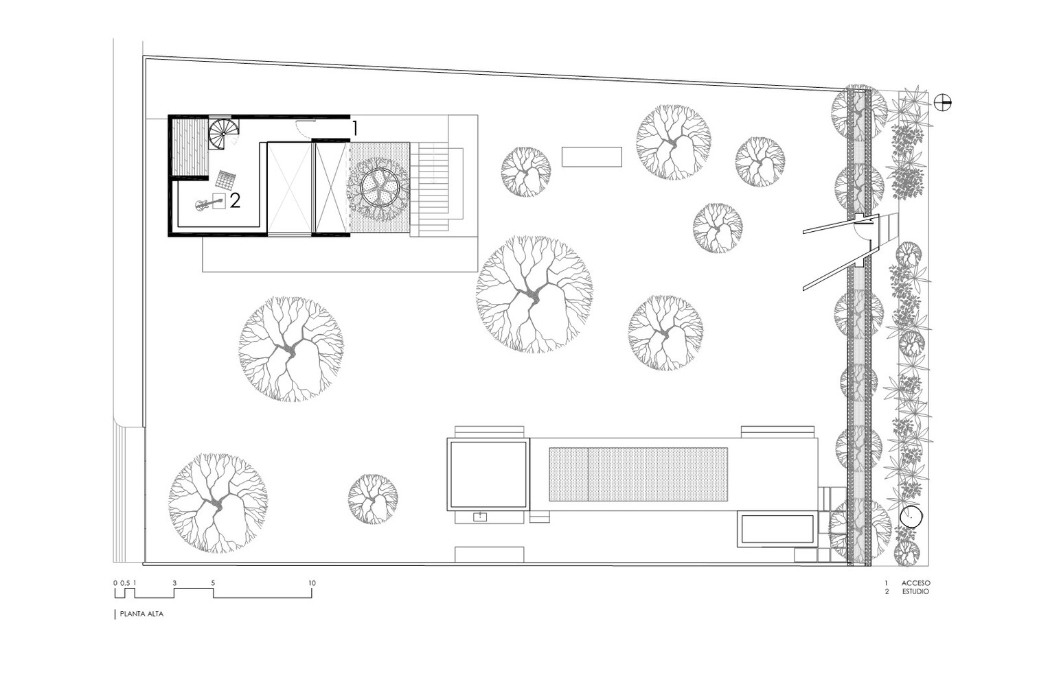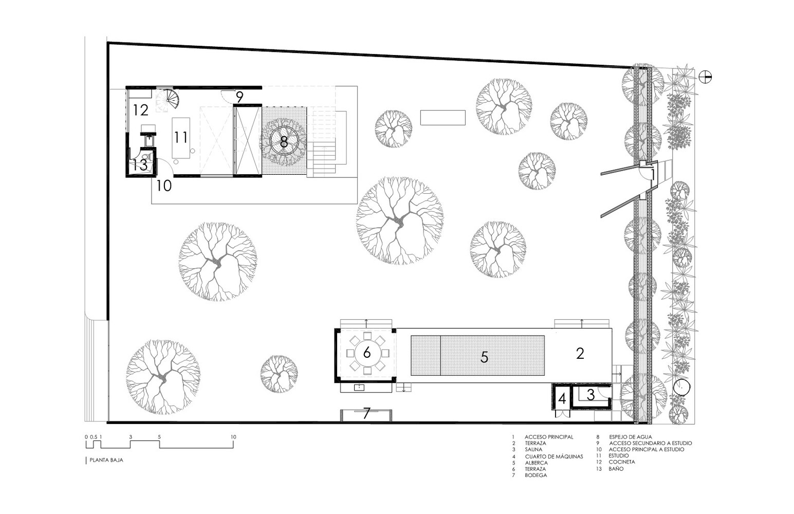 中央有一棵树的镜面水池为空间带来清凉与宁静。工作室内部被规划为藏品存放地,这些藏品滋养着艺术与叙事灵感。空间兼具休憩与冥想功能,其灵活的结构既能适应放松时刻,也能满足创意活动的需求。总体而言,这座建筑项目是内省、创作与自然连接的交汇点 —— 在这个独特且富有个性的环境中,人们可以尽情体验、探索与汲取灵感。