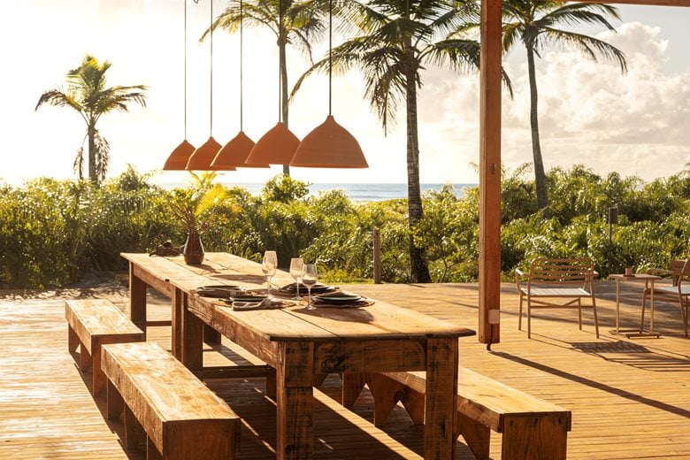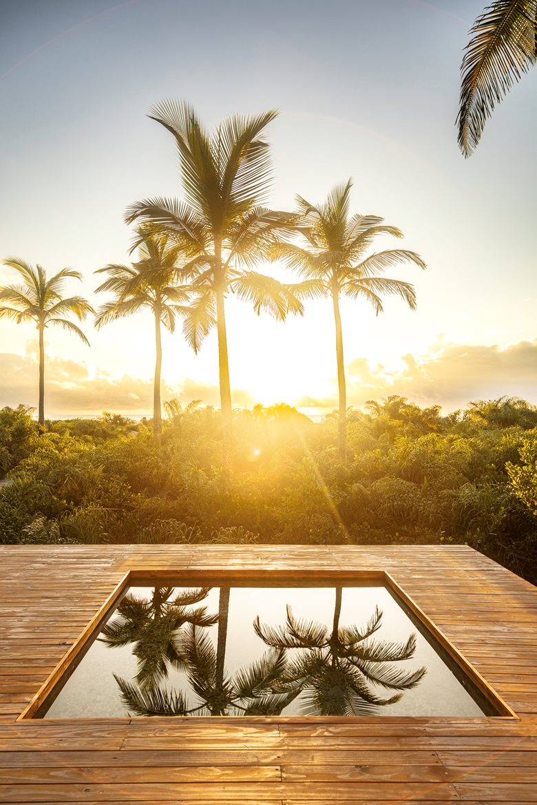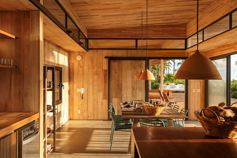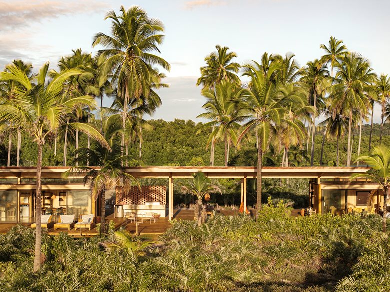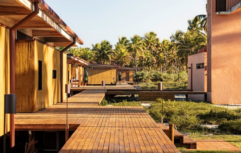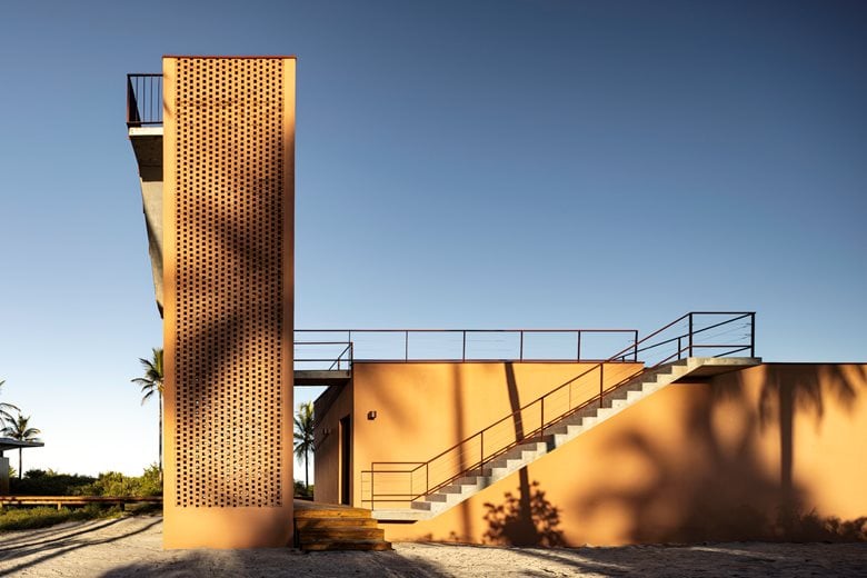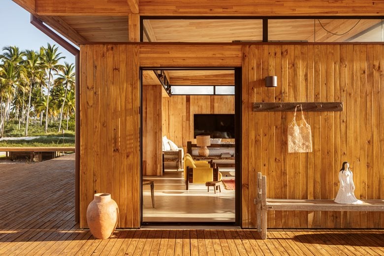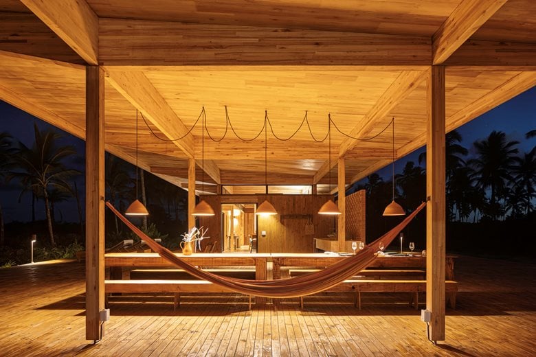 在巴伊亚州北海岸的河流与海洋之间,“模块化巴伊亚海边民宿设计”(Modular Bahia)项目打造了一处当代热带休憩之所,它对当地地域与气候特点有着敏锐的呼应。该项目由 UNA barbara e valentim 建筑事务所设计,将工业化解决方案与生物气候策略相结合 —— 精准回应了环境条件,也实现了与景观更深度融合的空间占用愿景。