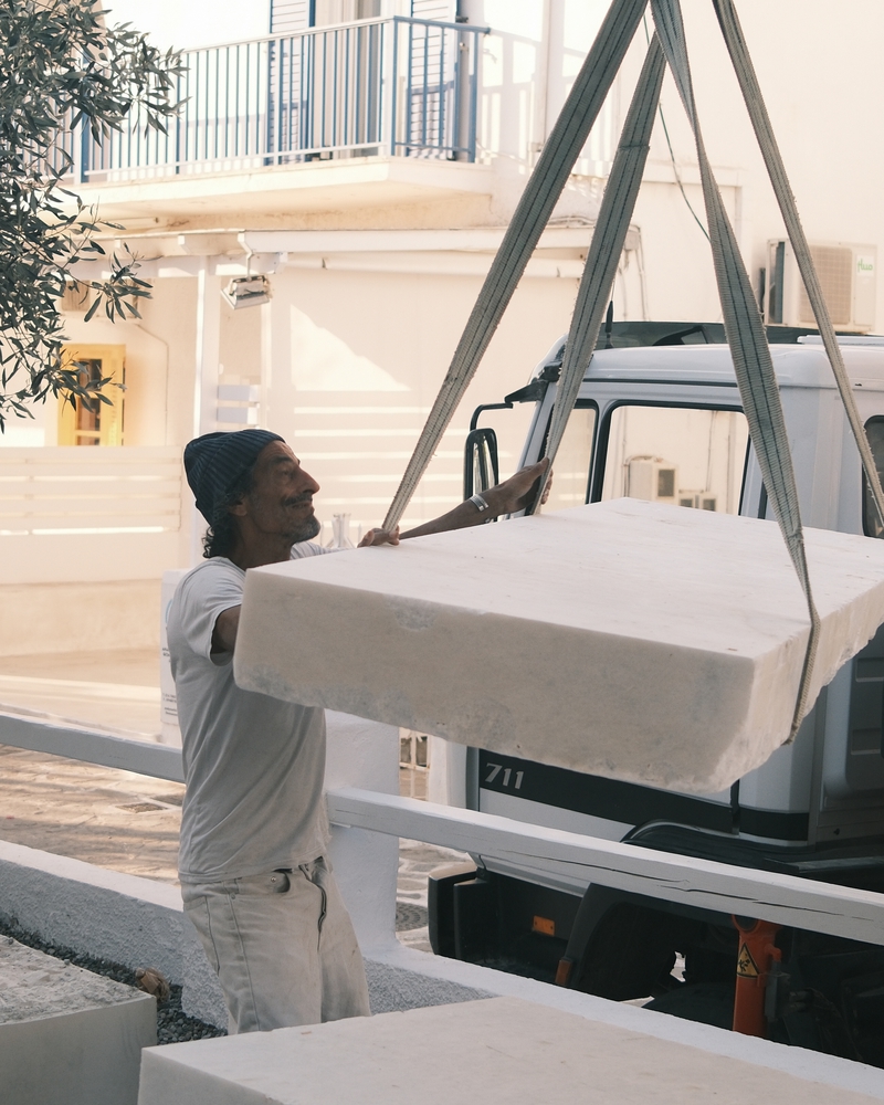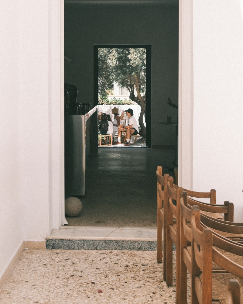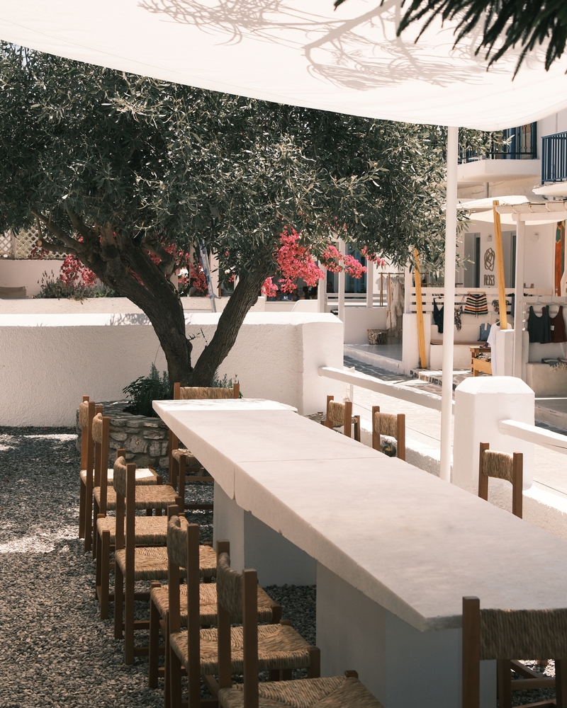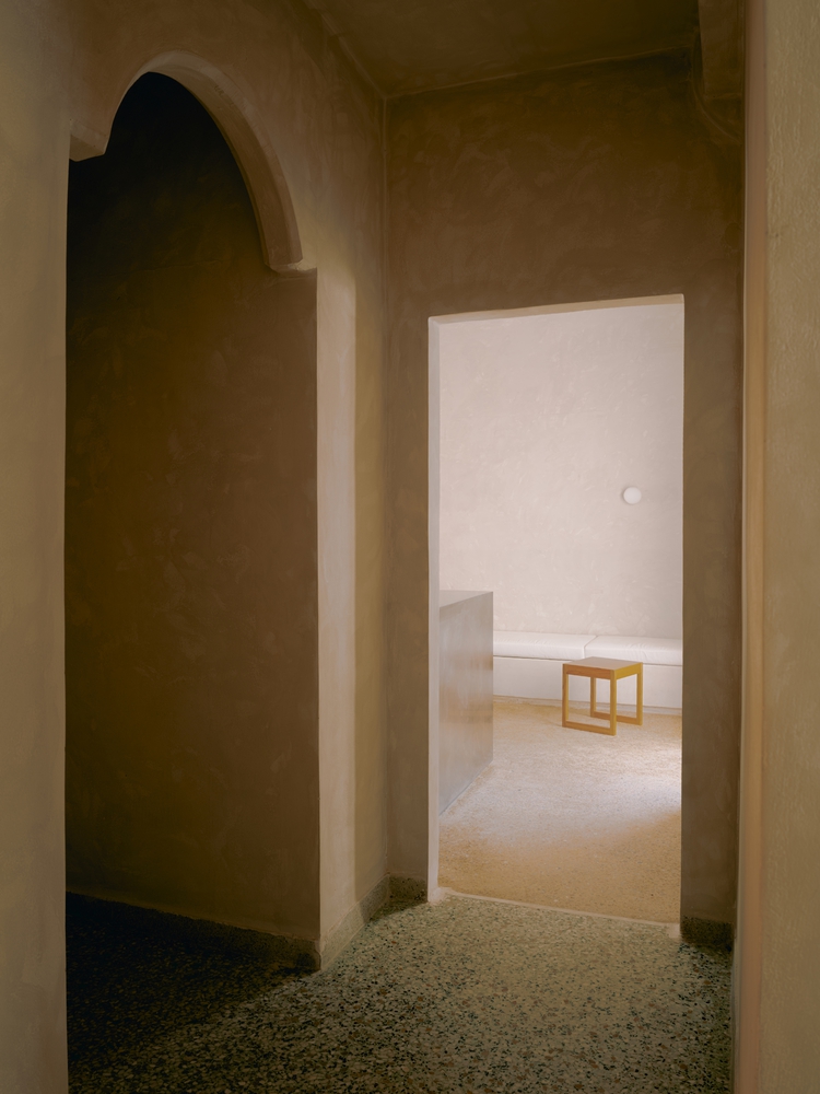 设计通过西奥多・普西霍约斯(Theodor Psychoyos)定制大理石家具、柔和照明与中性色调,模糊了室内外的界限。从手工甄选的材料到空间布局,每一处细节都旨在营造强烈的 “场所归属感”,同时促进人际互动。从清晨到午夜,空间始终吸引着访客沉浸于日常节奏之中,清晨的仪式感由此开启:灵感源自小镇晨间简约氛围的 “极简灵魂早餐”。所有餐食均为手工制作、新鲜且应季:后院花园采摘的香草、Red Jane 咖啡、1OAM Apotheke 品牌茶饮(马络提拉草茶、牛至茶与鼠尾草茶)以及在树下供应的鲜榨果汁。