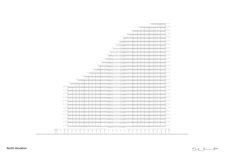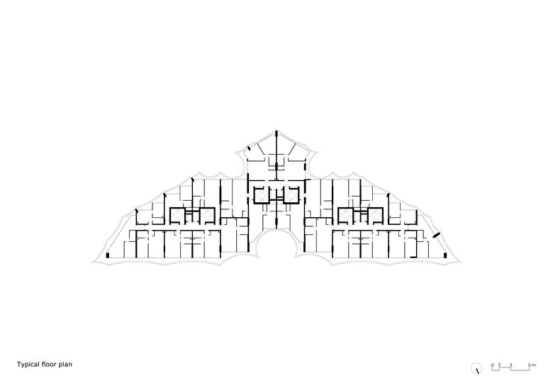 但我们建造的不是一个空间,而是一个场所,一个让人类在其中找到属于自己空间的场所。建筑周边的阳台在夏季提供遮荫,在冬季则能让阳光射入,满足了可持续能源建筑的基本法则。“地拉那之鹰” 是生活复杂性的一种综合体现。