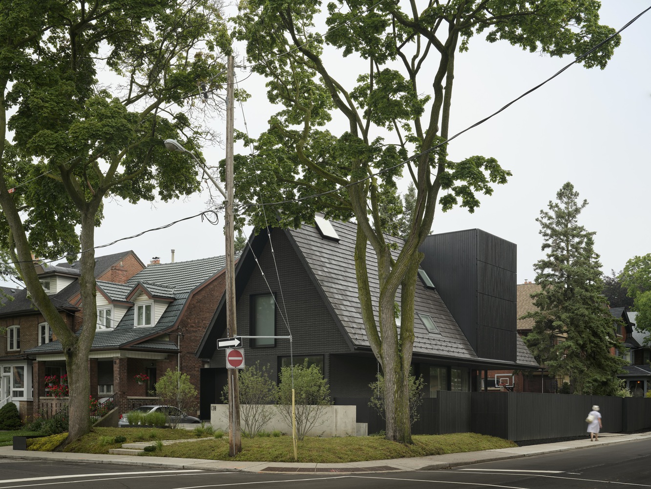 威斯敏斯特别墅设计坐落在多伦多海柏公园社区(High Park neighborhood)的一块街角用地上,周边环绕着传统的爱德华式山墙住宅。这座 2340 平方英尺(约 217.4 平方米)的三居室住宅是一个四口之家的主要居所。设计旨在通过经典的屋顶形式营造一种潜在的熟悉感和延续性,在融入环境与脱颖而出之间创造一种矛盾的平衡。项目隐藏在陡峭的风化赤陶瓦屋顶下,探索了 “占据屋顶下方空间” 的概念,类似于阁楼的空间体验。