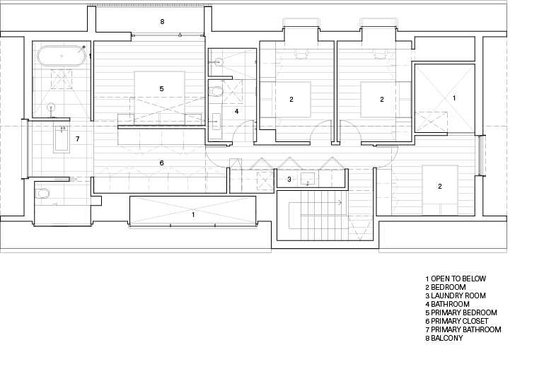 设计通过对传统屋顶形式的抽象演绎,既尊重了街区的历史文脉,又以深色体量和悬挑结构赋予建筑现代性的表达。室内外材料的碰撞与空间节奏的变化,使住宅在功能性之外,成为承载家庭生活与情感的立体容器。