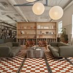 墙体之上也根据模数设置了可以对穿木棍的孔洞,并根据这些孔洞设置了2、3、5格的金属隔板,这些木棍、隔板满足悬挂、放置文创物品和书籍的需求。