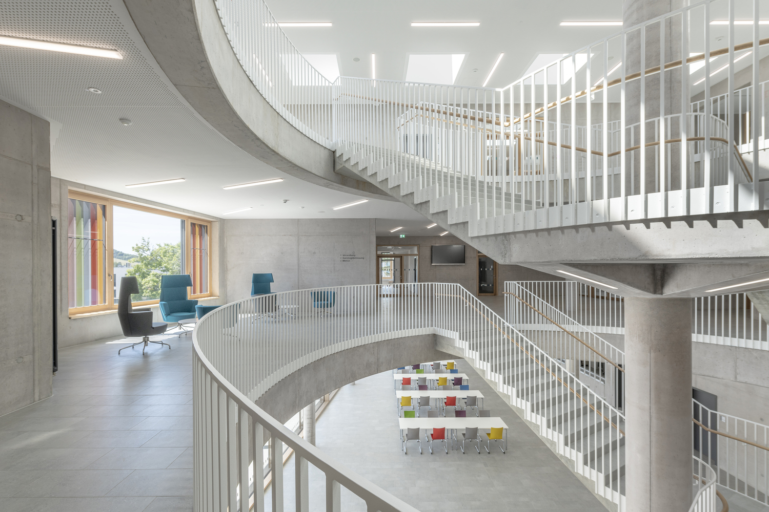 布伦伯格学校设计第一施工阶段。布伦贝格市计划对校园进行翻新、扩建和重组,以便将所有不同类型的学校集中在同一地点。第一期工程包括新建一栋教学楼,其中包括一所全日制三制小学、一所特殊教育和咨询中心(SBBZ)以及一个供整个校园使用的食堂。在第二施工阶段,将对现有的小学教学楼进行翻新和扩建,作为现有中学的扩建部分。