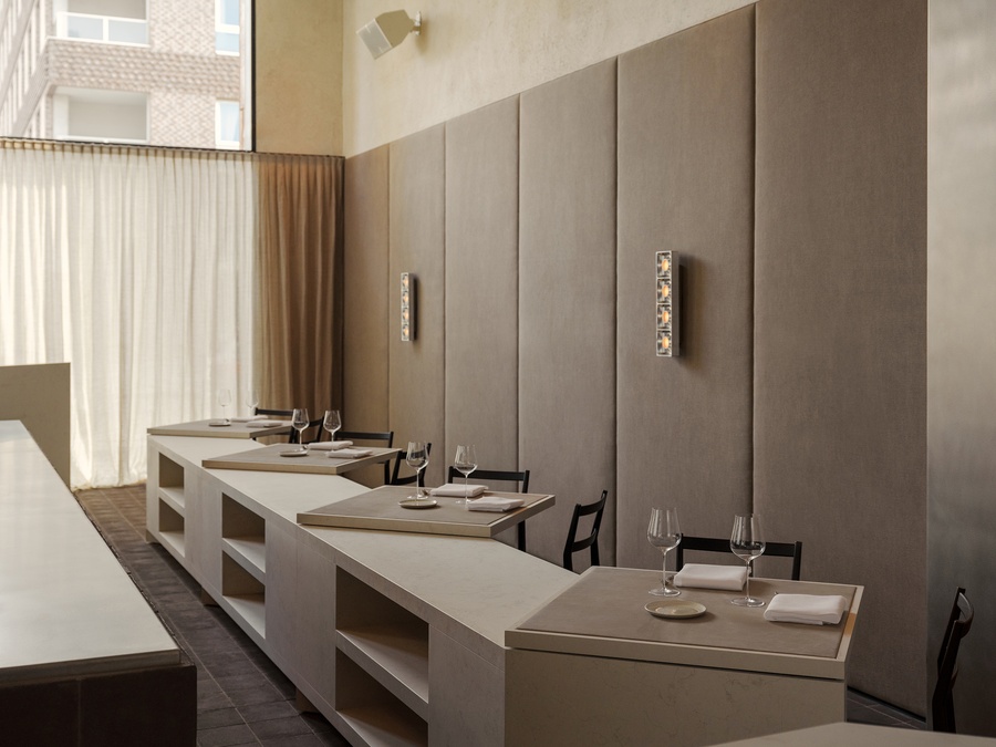 在餐厅设计的语境中,The Jane 远不止是一处果腹之地,它是情感、形态与风味的三重交响场域。由 Nicolas Schuybroek 操刀的室内空间,以 “反差感” 为叙事主线,在野兽派的力量感中嵌入极致的细节精度,让力量与柔美、静谧与声响、粗粝与精巧在此共生,最终将餐厅升华为 “美食视野、情感共鸣与极致追求” 的交汇之地。
