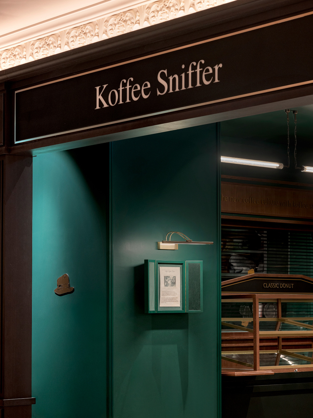 当深色胡桃木的肌理与墨绿墙面的光泽在灯光下交织,Koffee Sniffer 的空间便成了一场 “复古叙事与当代生活” 的对话。这家以 “咖啡嗅觉” 为核心的咖啡馆,在复古风格的外壳下,用材质、光影与细节构建出一个兼具仪式感与松弛感的 “咖啡剧场”—— 它既是对旧时光的温柔回望,也是为当代都市人量身定制的 “情绪容器”。