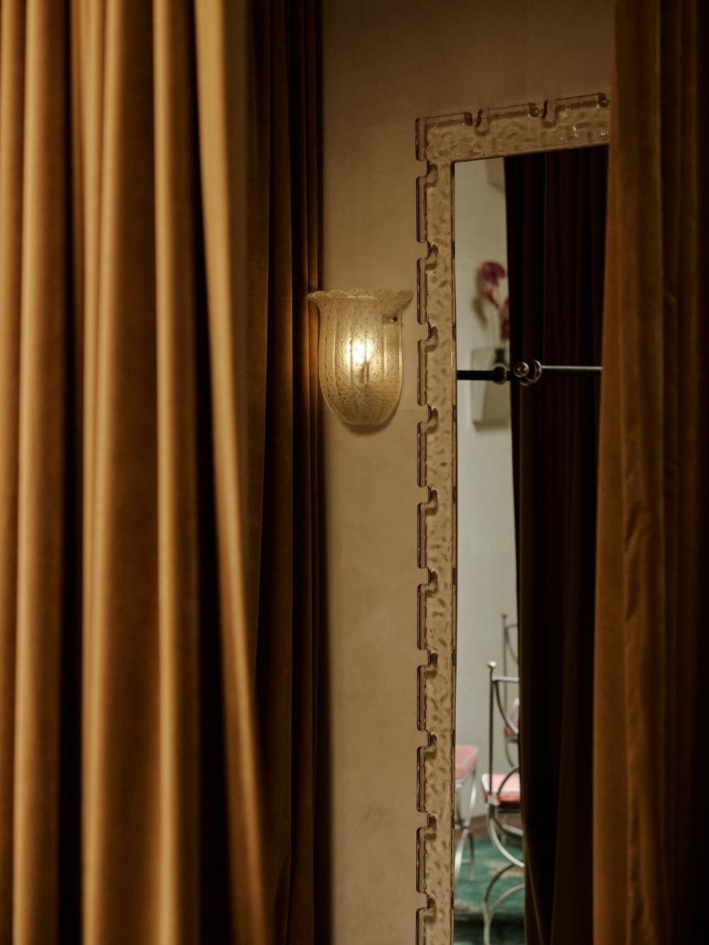 材质是塑造空间风格与传递品牌价值的关键载体。该空间在材质选择上尽显巧思,复古木质元素大量运用,从拼花地板到造型古朴的实木桌,木材的天然纹理与温润质感,传递出复古家居的典雅韵味,唤起消费者的怀旧情感。同时,现代材质如亚克力、金属等也穿插其中,亚克力座椅的通透感、金属衣架的利落线条,与木质元素形成鲜明对比,既丰富了材质层次,又为空间注入现代气息,展现出品牌在传承与创新间的平衡追求。墙面采用的特殊肌理涂料,细腻且富有质感,与复古木质、现代金属等材质相互映衬,共同营造出兼具复古与现代的空间质感,让消费者在触摸与感受中,体会到空间的多元魅力。