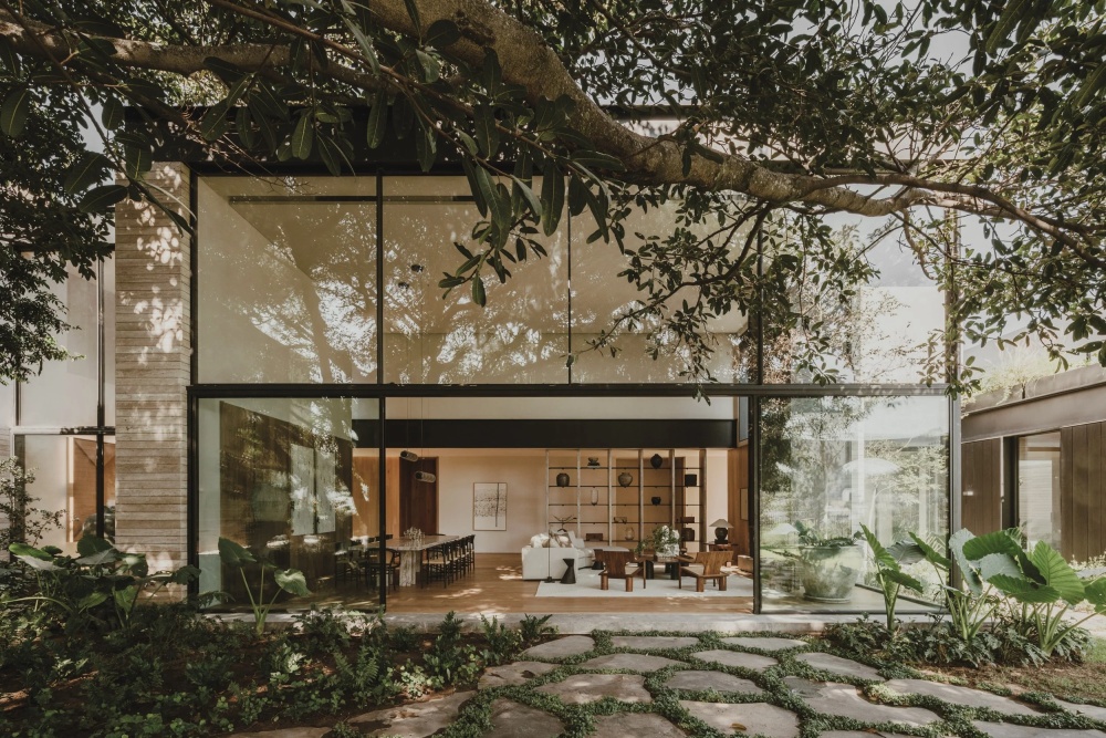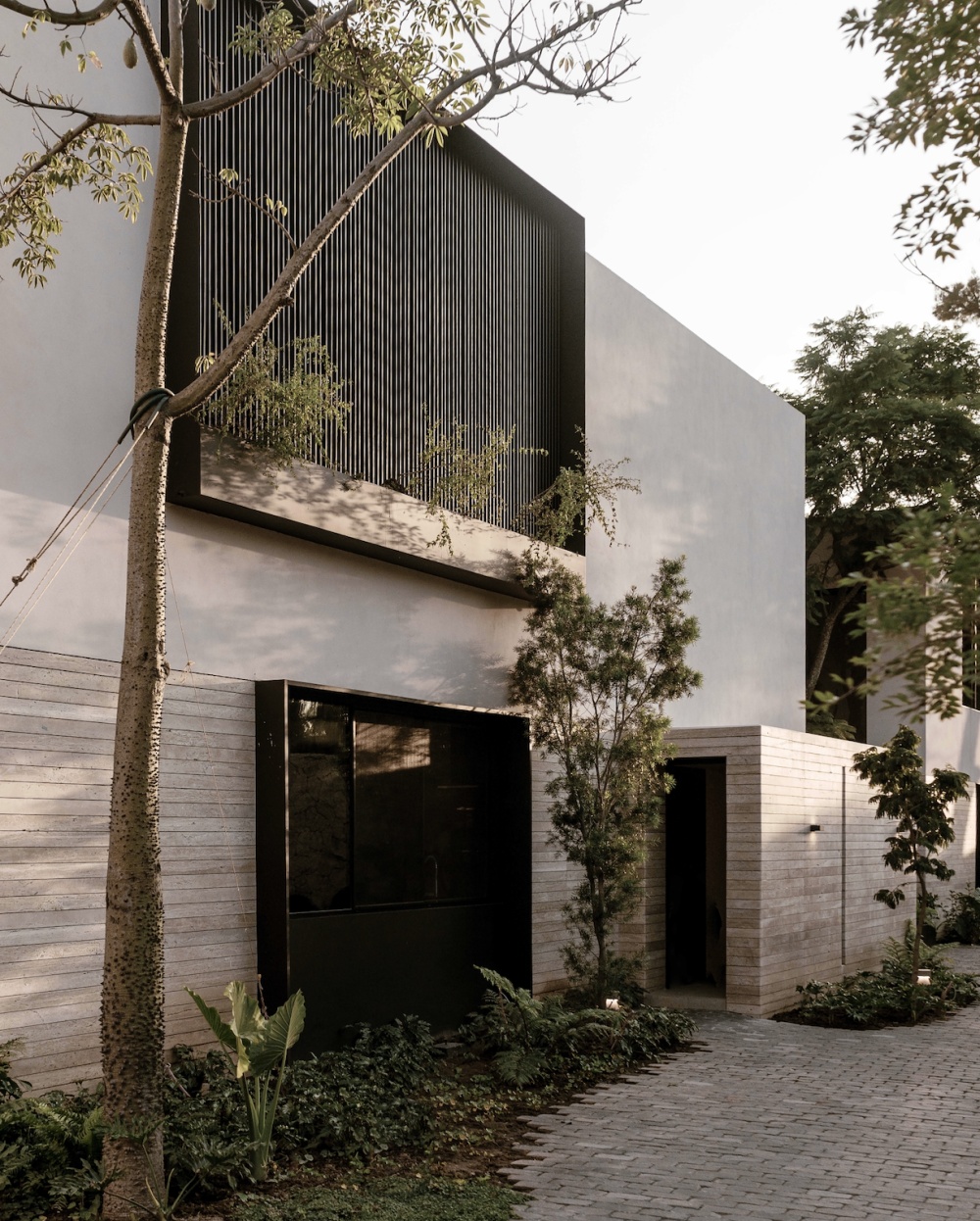该侘寂风别墅设计是在墨西哥瓜达拉哈拉的翠绿花园中,JDEstudio 与 Aagnes 以对工艺的敬畏、对材料的敏感,共同打造了一座名为 Casa CO 的住宅。它不是一座追求 “惊艳” 的房子,而是一处能让光、物质与时间对话的容器 —— 晨曦落在石灰华上,午后的阴影爬过烧杉木板,黄昏的阳光透过窗帘在卧室投下纹路,在这里,生活不再是匆忙的赶路,而是与自然、与自我的温柔相处。