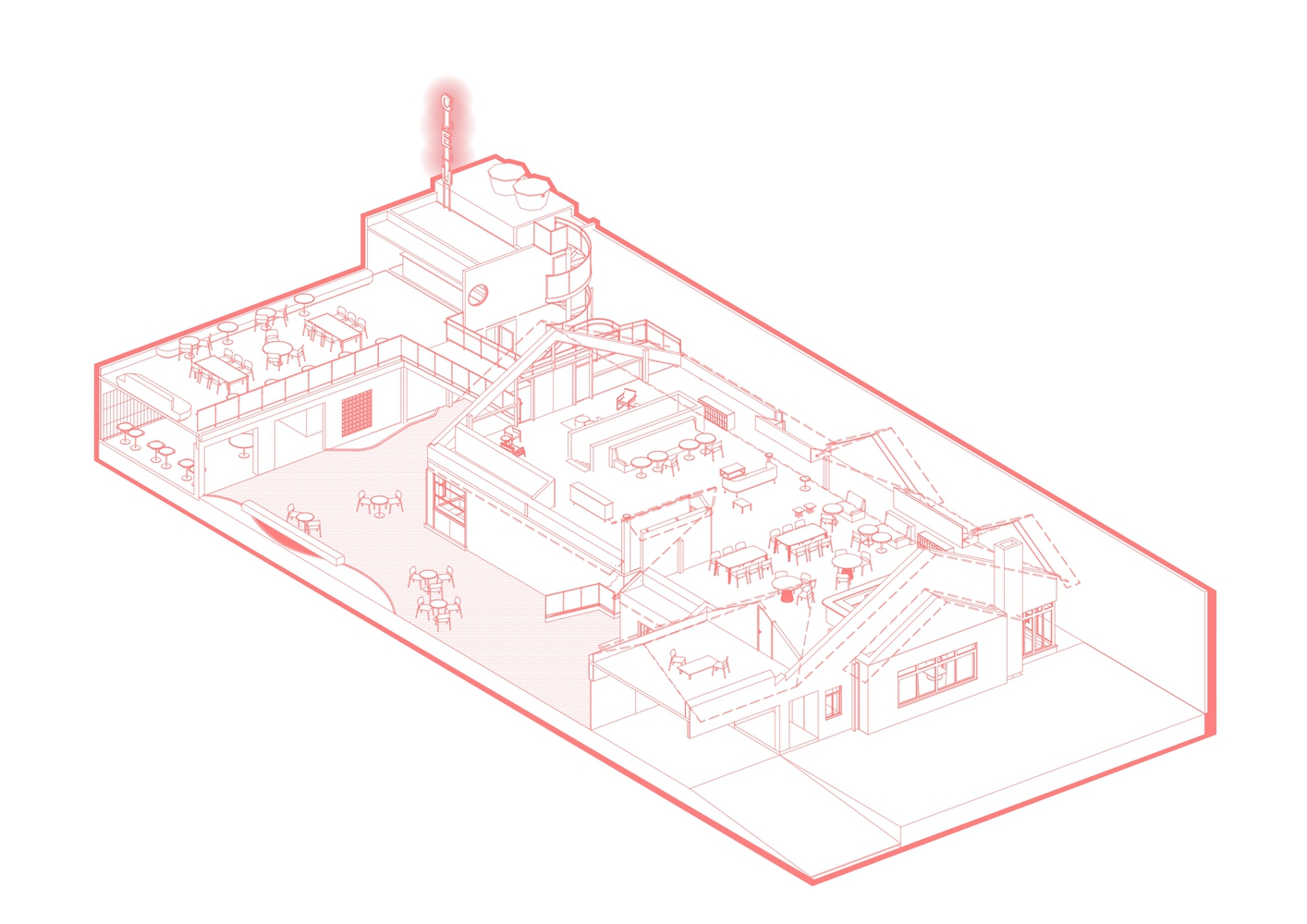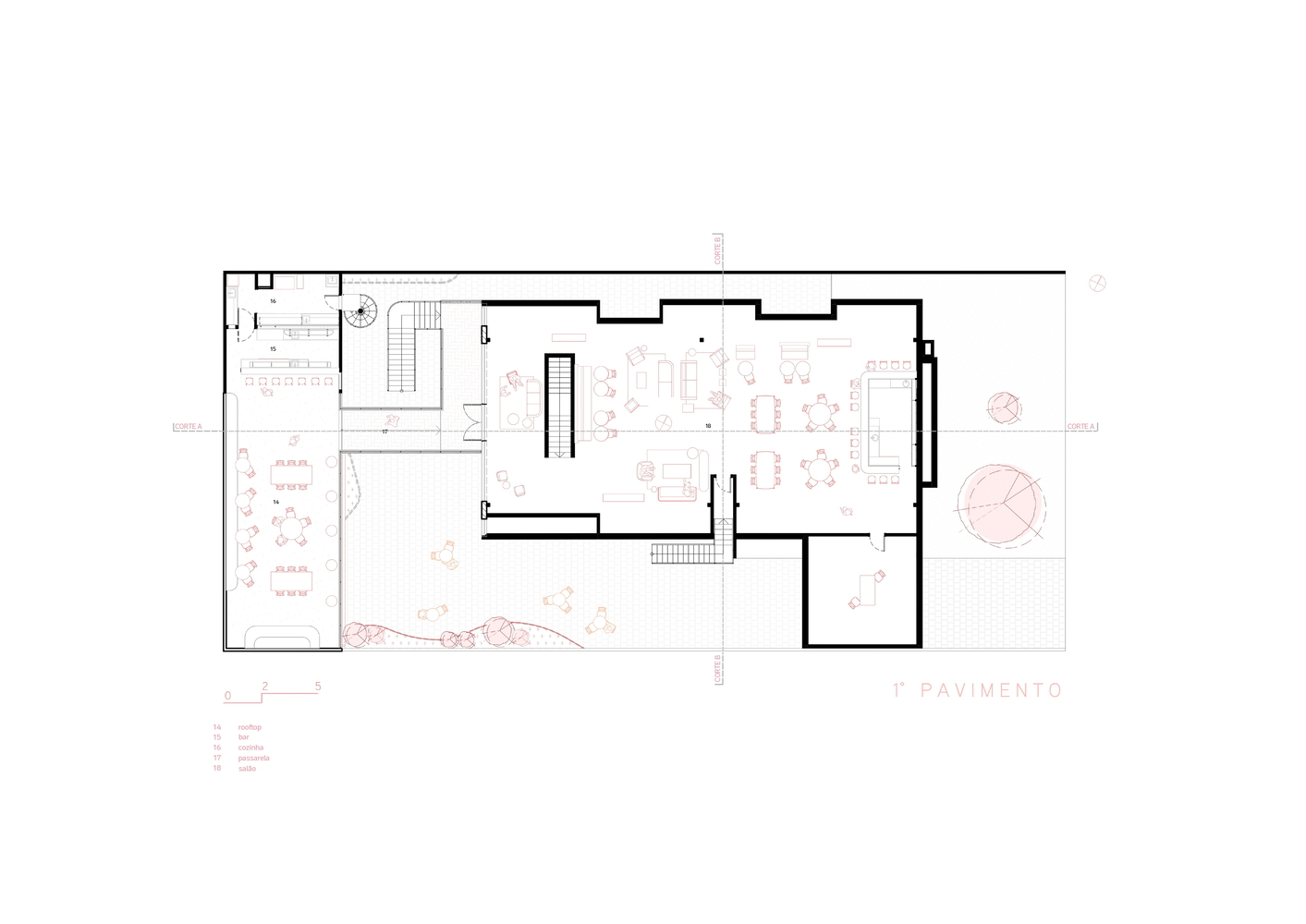 该酒吧设计在库里蒂巴市巴泰尔区的城市肌理中,一栋20世纪50年代的建筑正以全新姿态呼吸——由它改造而成的Céu Bar,在完整保留历史立面的城市印记之余,将当代设计的活力注入建筑肌理。这里没有对历史的刻意复刻,也没有现代元素的盲目堆砌,而是以“新旧共生”为设计语言,在时光的褶皱里,为库里蒂巴的夜生活构建出一个兼具记忆温度与多元体验的复合型空间。