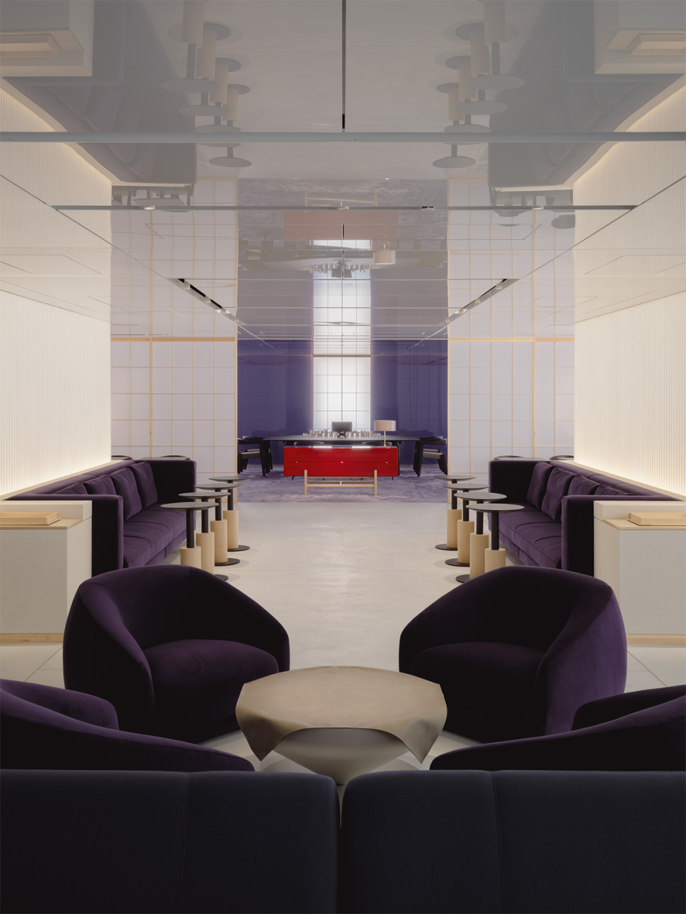 在东京银座的繁华脉络中,I IN 设计的松屋银座VIP休息室设计,并非简单的 “休憩空间”,而是一场对银座 “光泽” 精神的空间转译。设计团队以 “光” 为核心媒介,将江户紫的日式端庄与白色的现代简约交织,在原有宽敞流畅的空间基底上,通过反光材质、层次光影与情感化分区,让休息室既呼应银座的都市璀璨,又承载 “清新而深邃” 的休憩体验,成为松屋银座与 JCB 顾客专属的 “都市光泽庇护所”。
