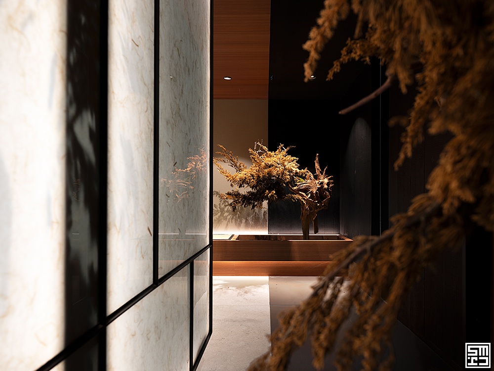 在中国台湾省台北的街巷深处,「蓊」日式餐厅设计以 “光为引,木为骨,禅为魂” 的设计语言,重新定义了日式料理的空间体验。设计团队以 “饮食即修行,空间即媒介” 为核心理念,将缓升的坡道转化为 “前往美食圣域的参道”,用光影与材质构建出一处 “先于味觉,触动五感” 的餐饮场域,让食客在踏入空间的刹那,便开启一场 “视觉先行、食韵随后” 的感官修行。