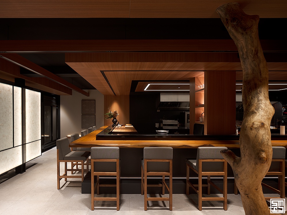 视觉:从入口坡道的光影引导,到料理台的舞台化灯光,再到木质与石材的材质对比,每一处视觉元素都在传递 “料理美学”—— 让食客在品尝前,先通过视觉理解 “食材的本味”“厨师的匠心”。