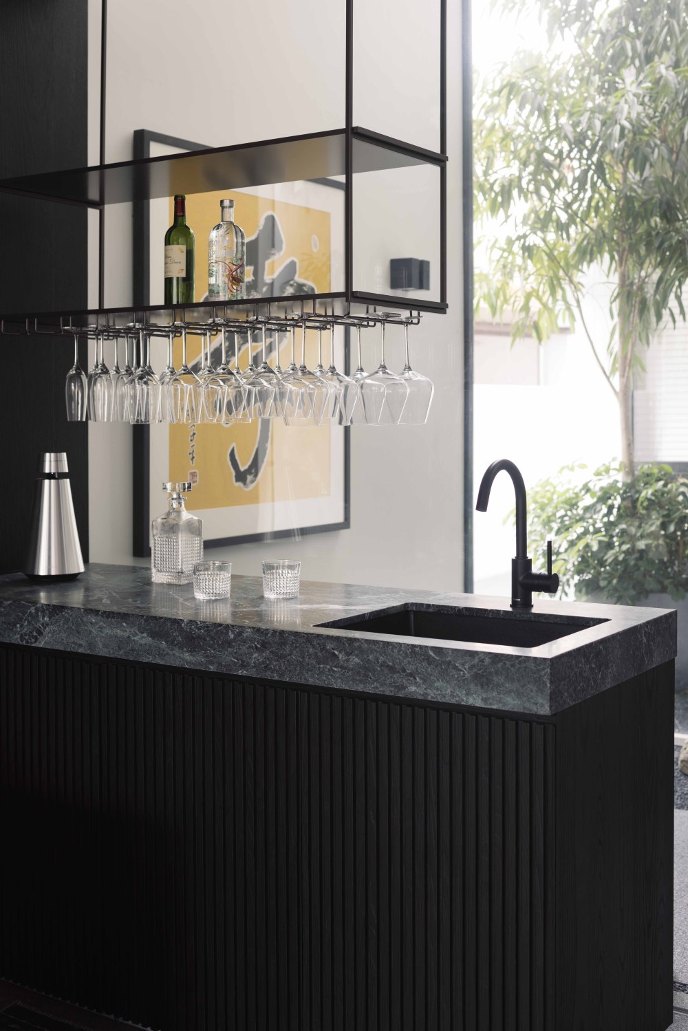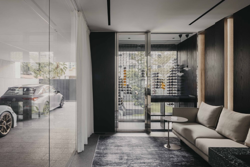 Halcyon House 的一楼,既有 “汽车展示区” 的酷,也有 “鹅卵石庭院” 的静,两种气质无缝衔接,为家庭生活提供了 “多样场景”。