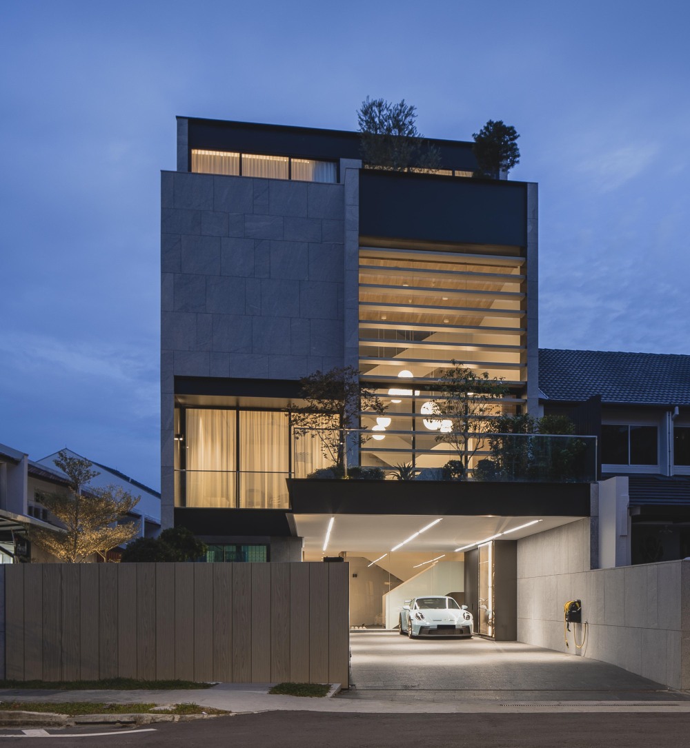 该别墅设计是在新加坡,Ming Architects 为一个成长型家庭打造的 Halcyon House,是一场 “光与木的温柔协奏”。这座住宅没有追求浮夸的造型,而是以 “双体量客厅” 为核心,用特色楼梯串联空间,让自然光与柔和材质贯穿始终 —— 无论是二楼客厅被高窗与吊灯点亮的开阔,还是一楼鹅卵石庭院带来的宁静,或是主浴室天窗下石墙的光影游戏,都在为 “家庭生活” 服务,让每一位家庭成员,都能在自然与建筑的交融中,找到属于自己的舒适角落。