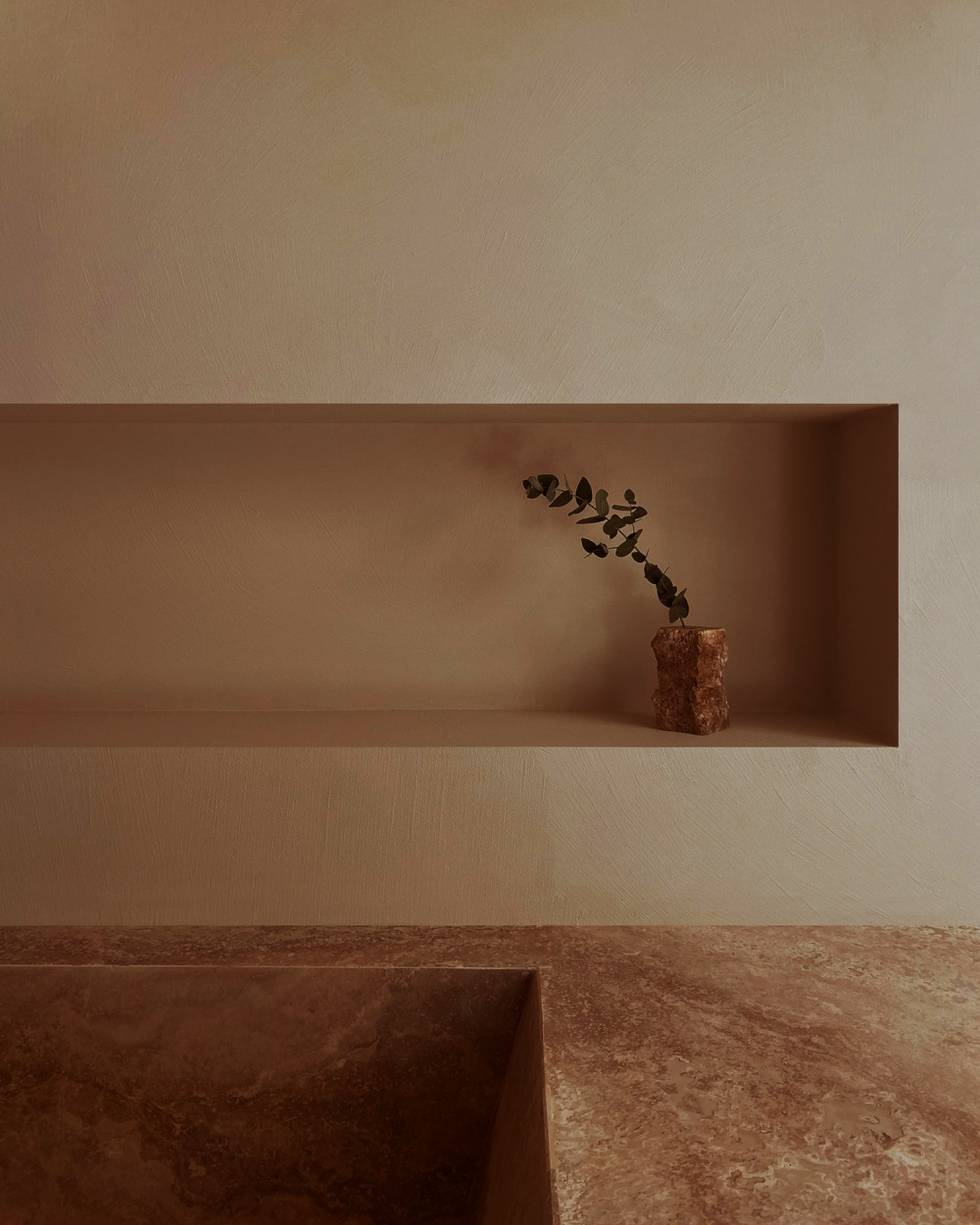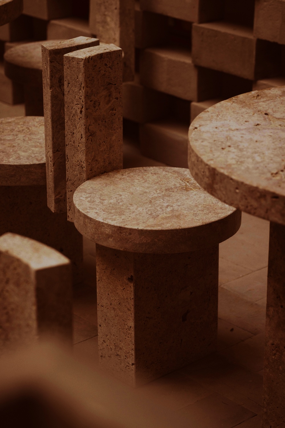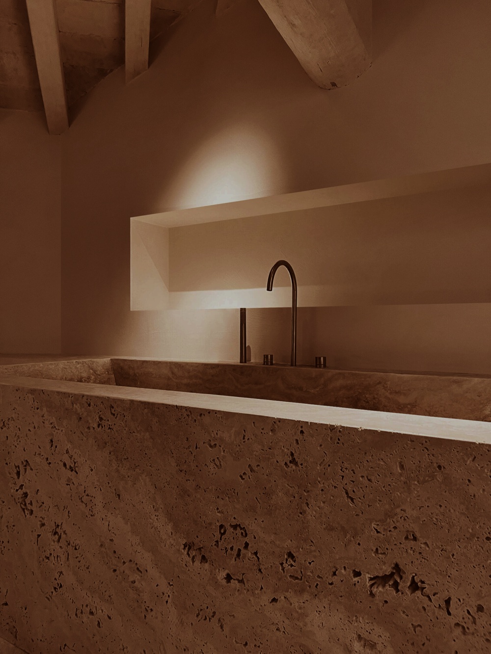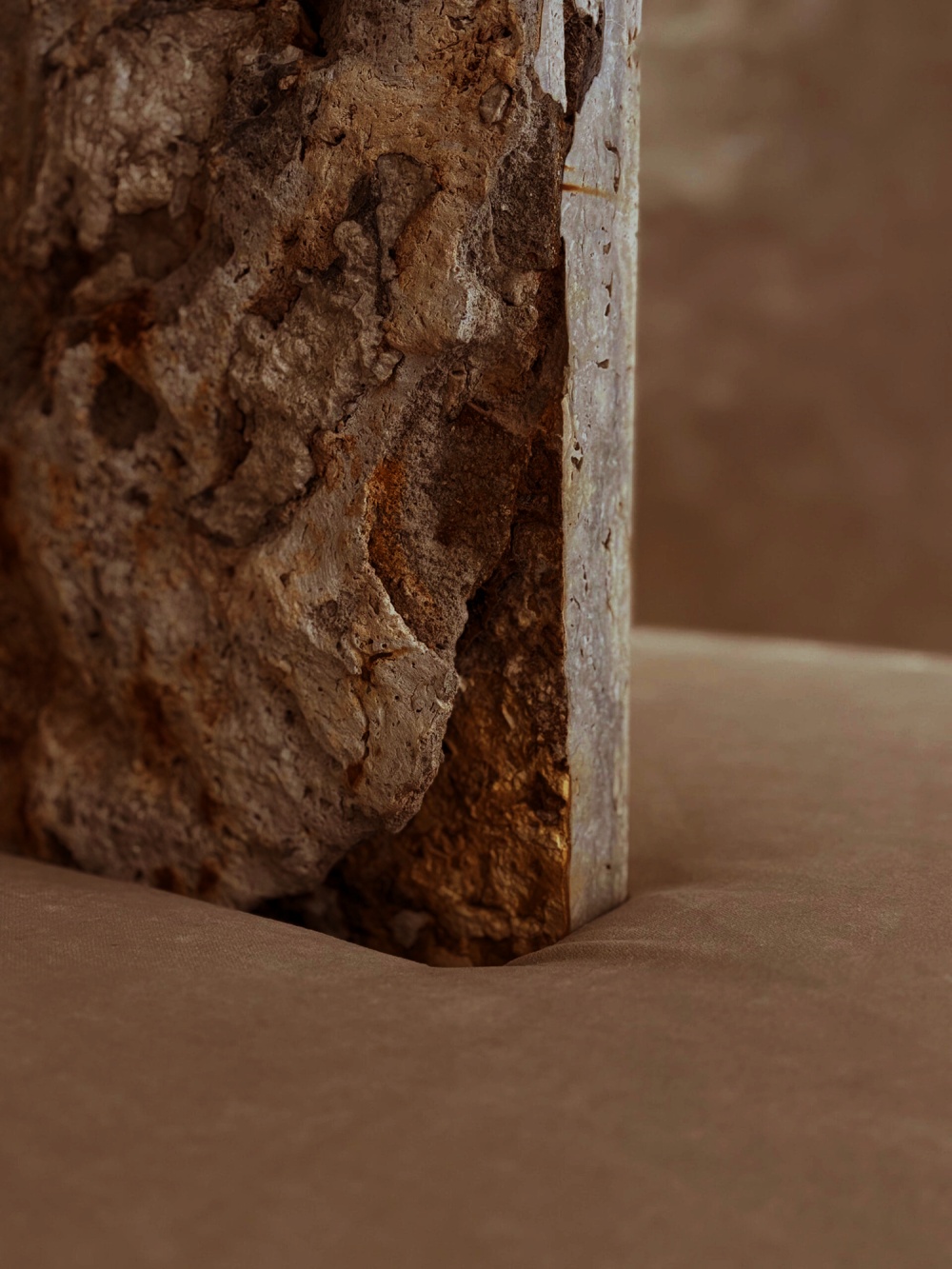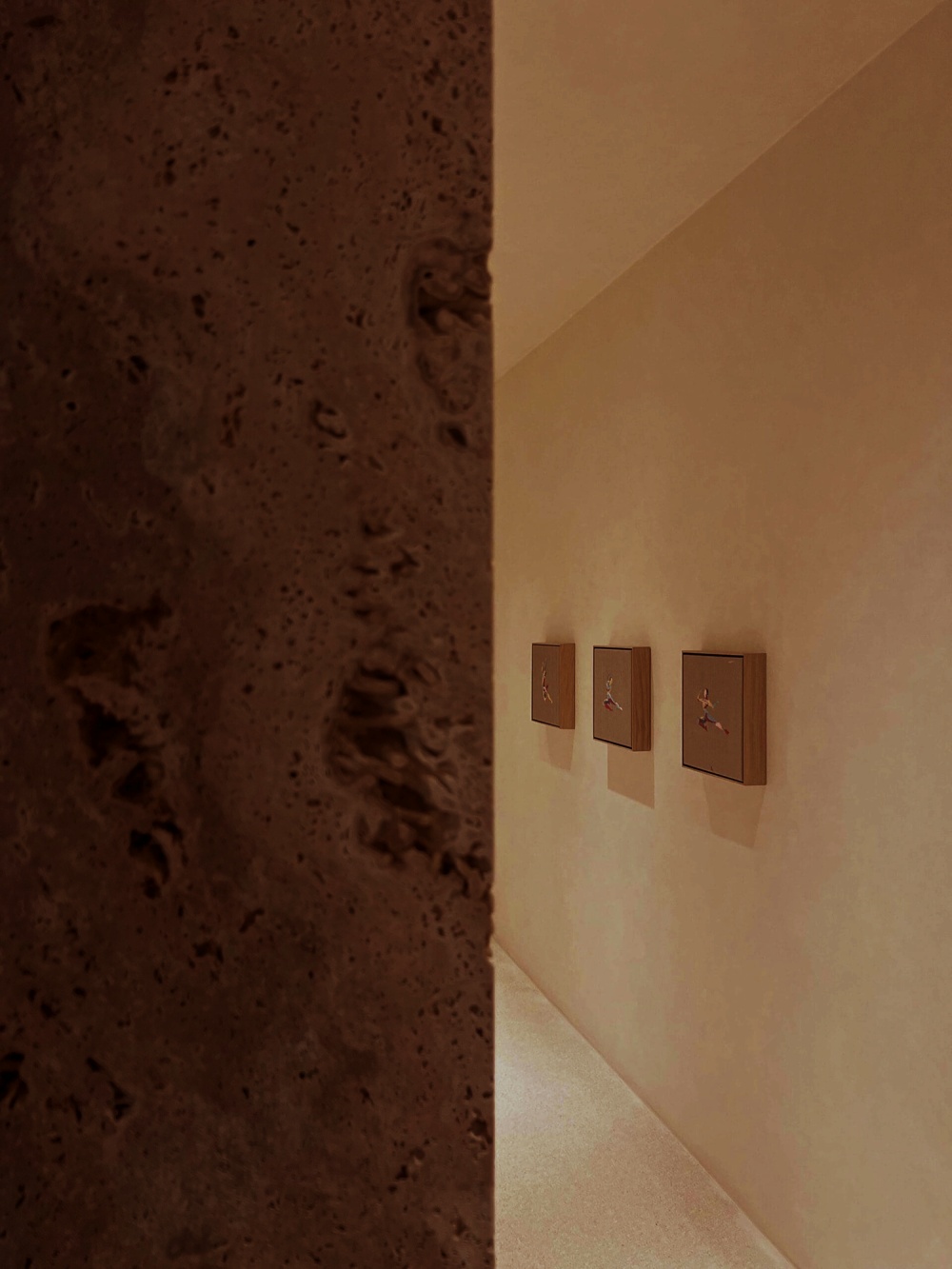 作为罗马建筑的 “基因材料”,石灰华在 NOMOS 酒店中被赋予了新的生命。其天然的纹理与浅米色调,既唤起人们对古罗马浴场、万神殿的历史记忆,又通过 STONE PLUS 涂层处理(增强色泽、防污抗紫外线)实现了现代功能的适配。在酒店公共区域,大块石灰华墙面如同一幅 “未完成的历史画卷”,粗糙肌理与光影的互动,让空间充满 “时间的厚重感”。