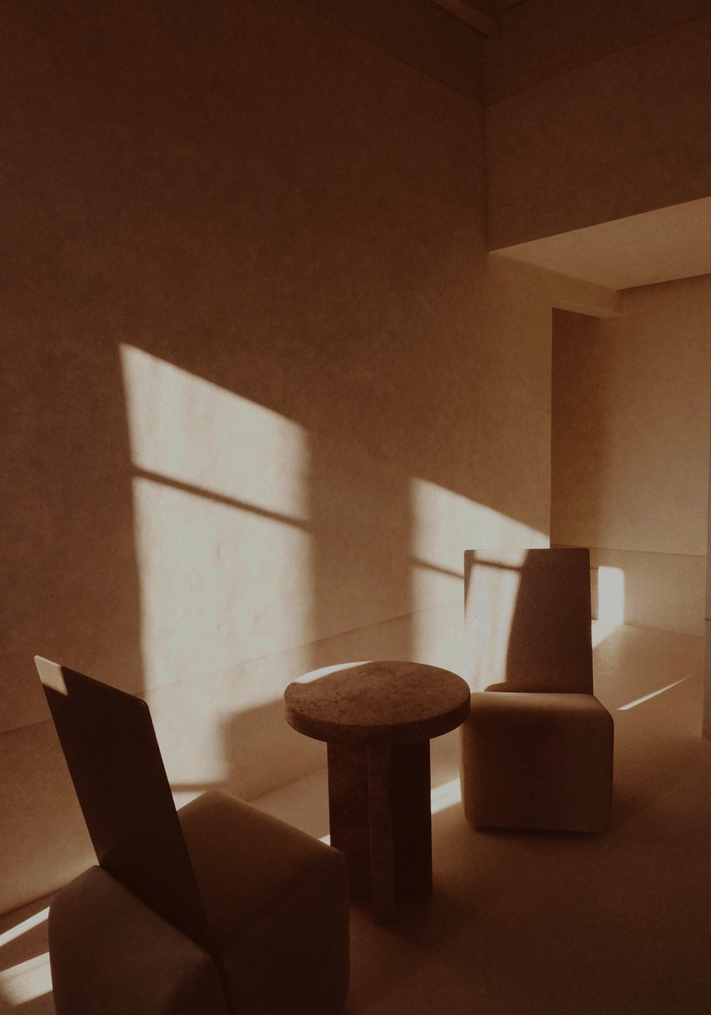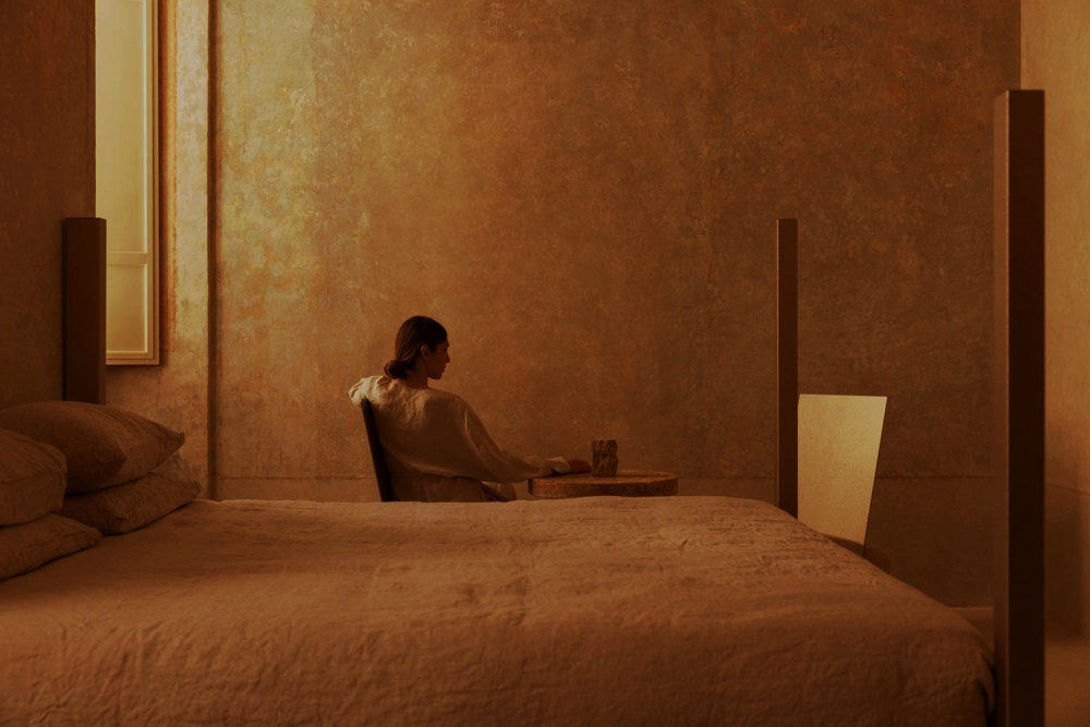 Henry Timi 擅长 “将功能隐藏于雕塑感的形式中”。酒店酒吧的九张桌子 “仿佛从地面升起”,几何底座既像古代文物,又具备实用功能;套房中的艺术品同时承担储物功能,床品的粗织亚麻布与简洁书桌的组合,在满足居住需求的同时,以 “雕塑般的造型” 传递极简美学。这种设计让 “功能” 不再是空间的妥协,而是与 “形式” 共生的艺术表达。