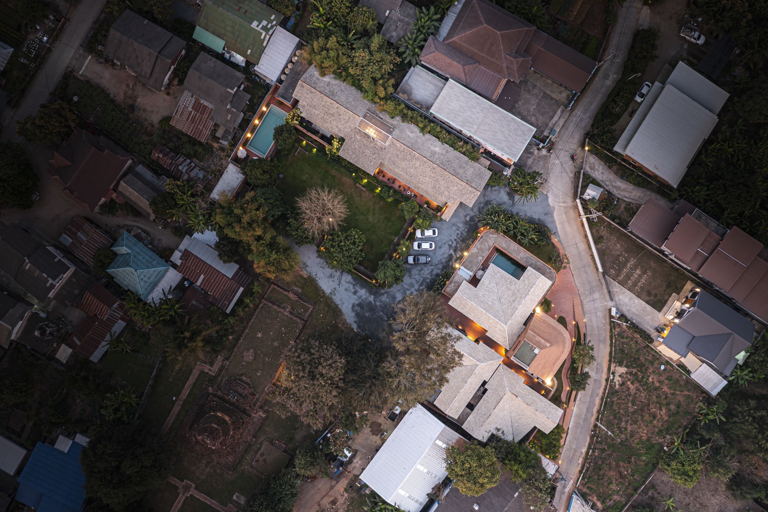该酒店的核心设计理念是营造宁静祥和的氛围。这一理念通过创新的动线设计得以实现 —— 模仿清盛古镇特有的、自然蜿蜒的小巷。建筑师巧妙考量建筑与场地的关系,将这些街巷的空间语言融入酒店的内部走廊设计中。
