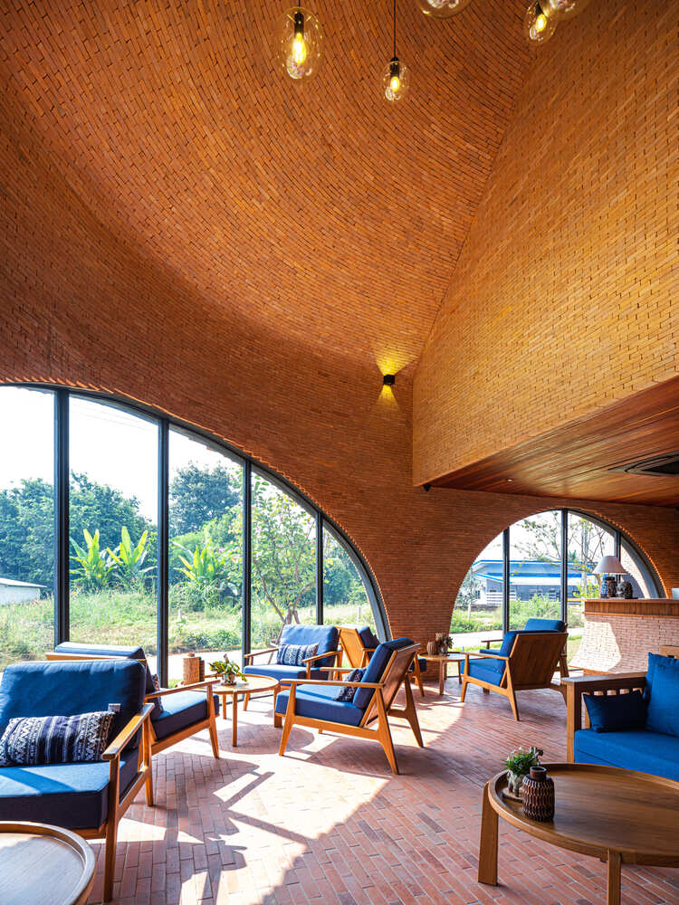 清盛镇的环境以两层木结构房屋的适中规模为特色。Athita 的外立面是对传统元素的巧妙重新诠释:当地民居常见的垂直木质百叶板被改造为酒店的私密围护结构;与之相辅相成的是砖石结构 —— 让人联想到古老寺庙和城墙,被重新用作酒店公共区域的外立面。这种巧妙的区分通过材料的运用,巧妙地引导客人在酒店的各个区域间流转。木材和砖石元素均通过创新的建造技术得到升华,既呼应了历史韵味,又避免了单纯的复刻。