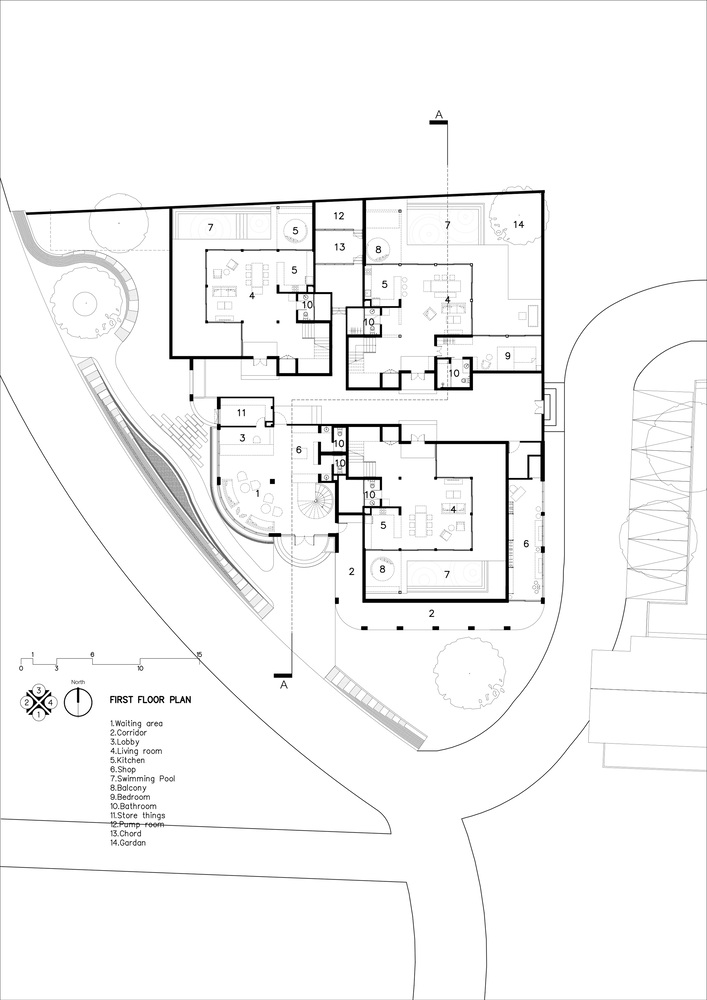 设计中将主要砖石建筑巧妙地置于酒店前部。这些面向公共区域的建筑起到了精心的缓冲作用,为僻静的泳池别墅隔绝外界干扰。在这些砖石建筑内部,水疗和按摩区等公共设施被精心布置在上层,由坚实的砖墙围合。泳池别墅本身采用半封闭设计,让客人能够尽情感受天空之美与清盛的静谧。
