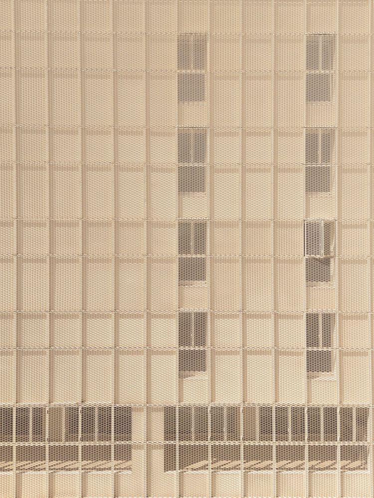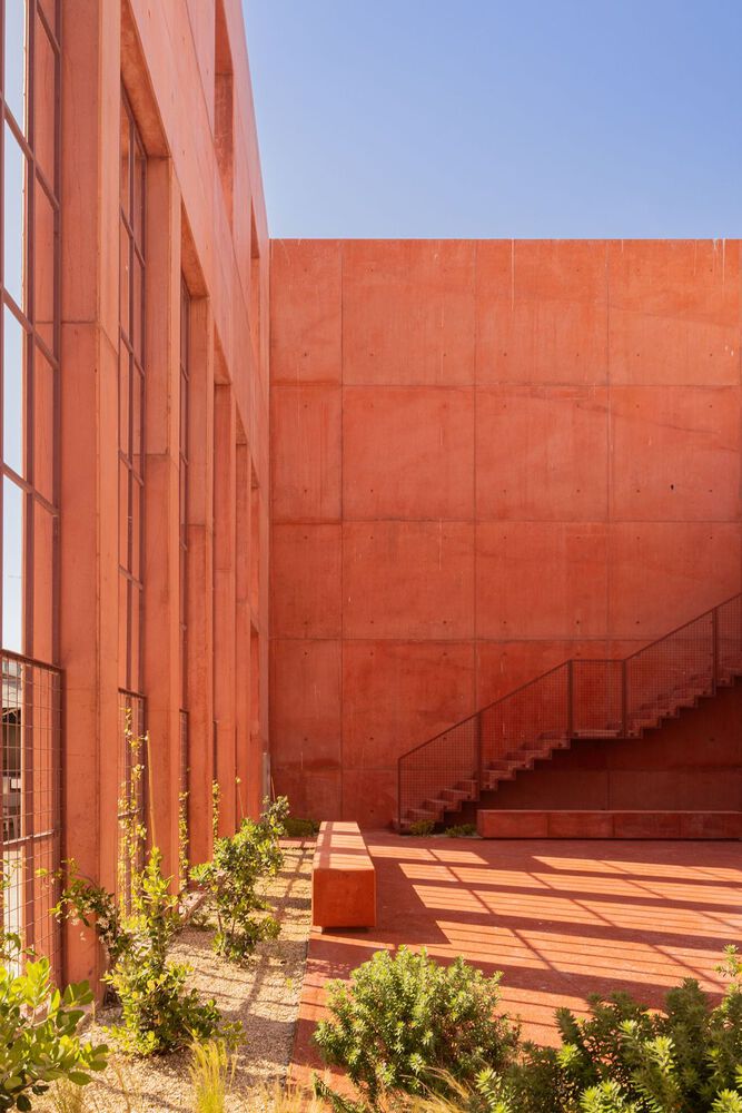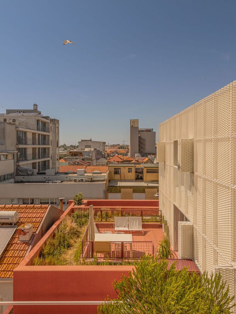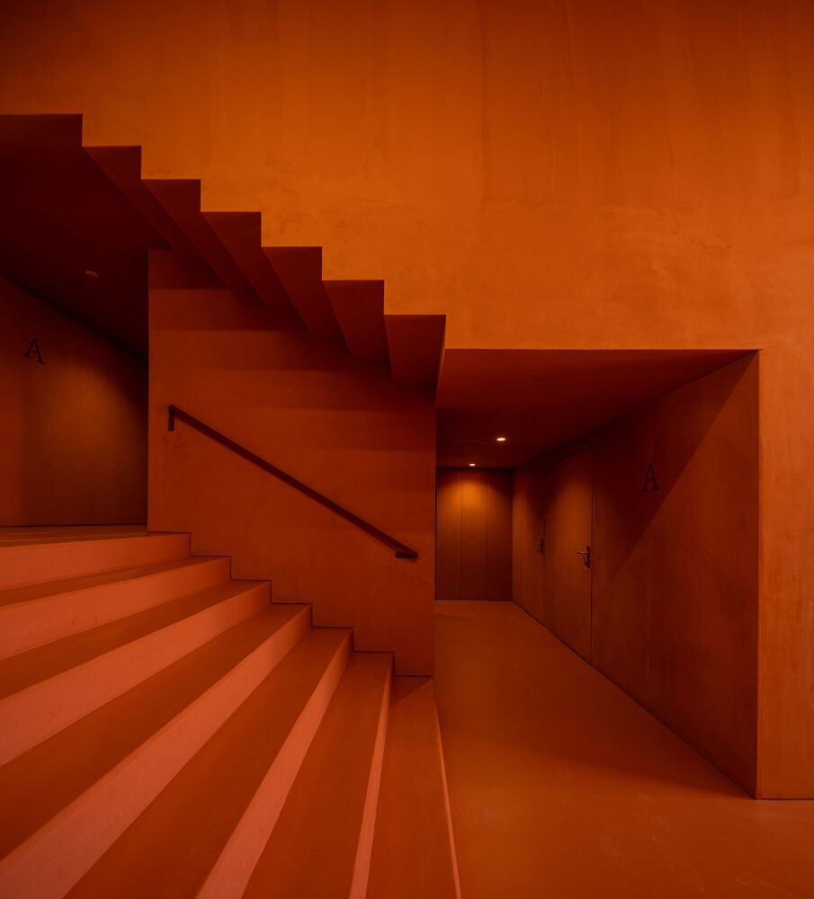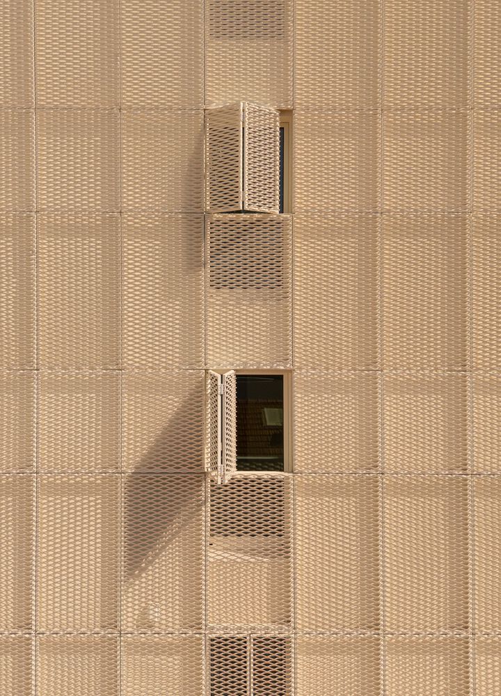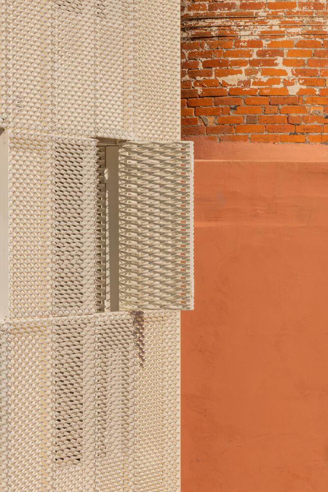 商业和服务设施位于底层,一层为办公区域,顶层则是住宅区。通过使用不同密度的材料 —— 着色混凝土和拉伸铝板,使不同时代的元素在形式上融为一体,形成新旧对话。原有厚重的建筑体量与庭院上方轻盈悬浮的建筑形成对比,这些高耸且独具特色的建筑体量所采用的材质灵感源自其靠近海洋的地理位置。