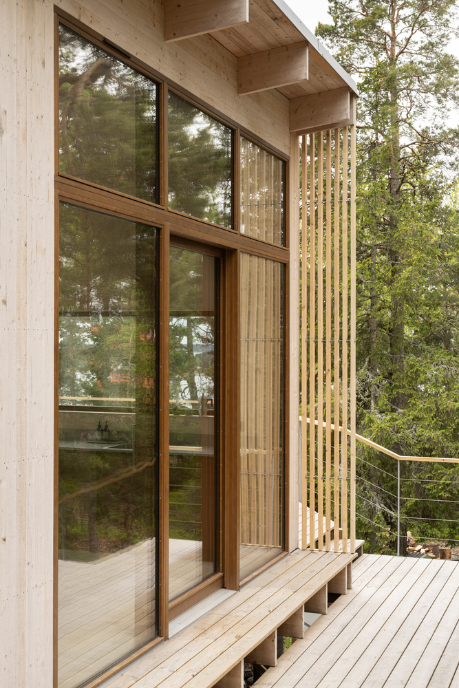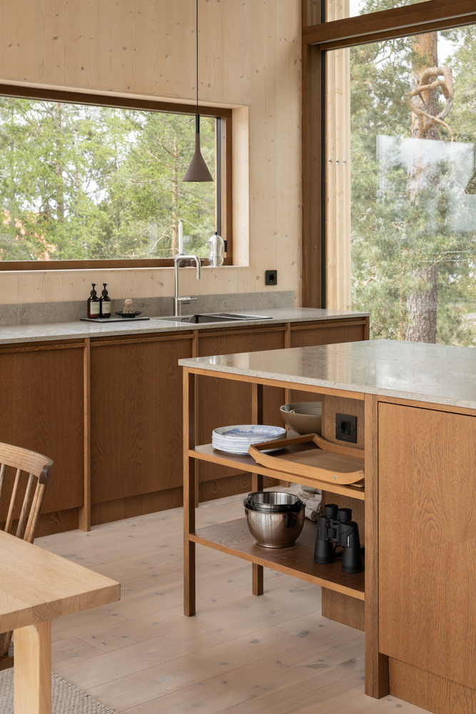 住宅以对场地最小化的开挖,轻柔地 “栖居” 于地面之上。点状基础将建筑结构架离花岗岩地表,最大程度保留了原有地形与植被。一系列木质平台与步道引导人们在不规则的地形中穿行。材料选择上,项目采用 Sioox 处理木材、木质玻璃窗框、纤细的钢制栏杆与天然石材,这些材料能随着时间自然老化,悄然融入周边景观,实现建筑与环境的长期共生。