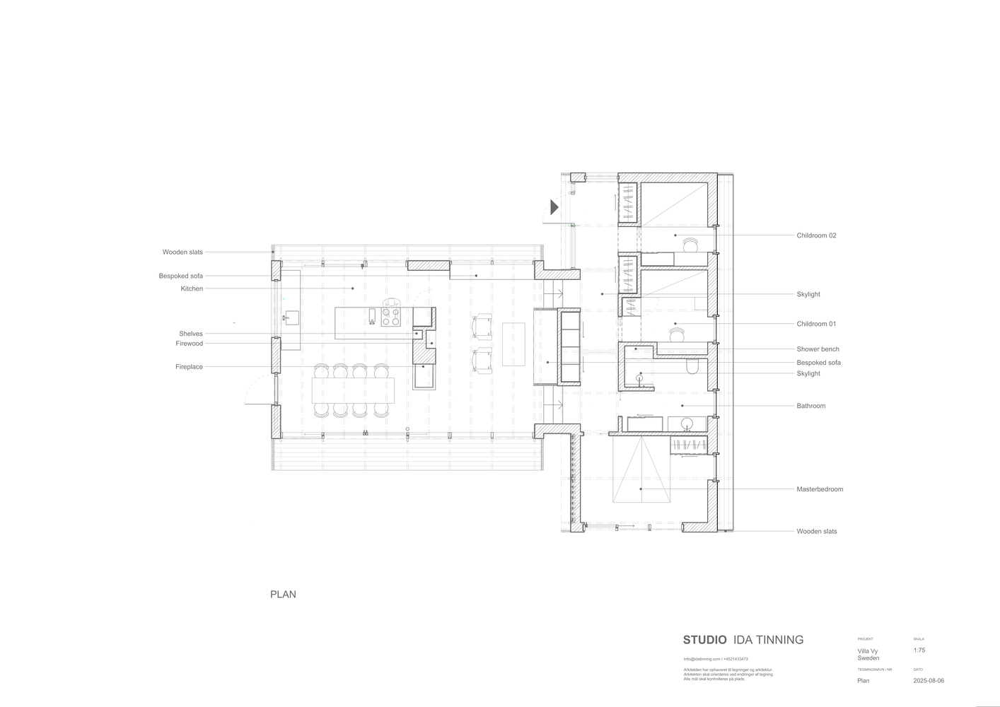 Vy 住宅的构造语言清晰且富有韵律感。建筑采用重复性的木柱与木梁体系建造,其结构的真实性成为项目的标志性美学特征。裸露的梁与椽构成了精准的结构网格,无论在室内还是室外,都传递出连贯统一的视觉感受。住宅并未隐藏其建造逻辑,反而将其充分展现 —— 每一处细节都经过精心考量,每一处节点连接都清晰可辨,以此彰显建筑的构造之美。