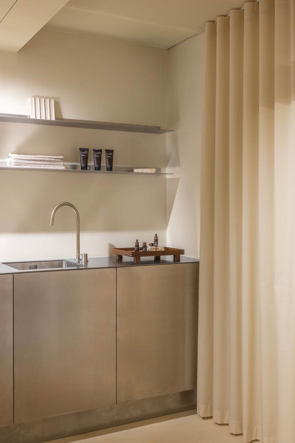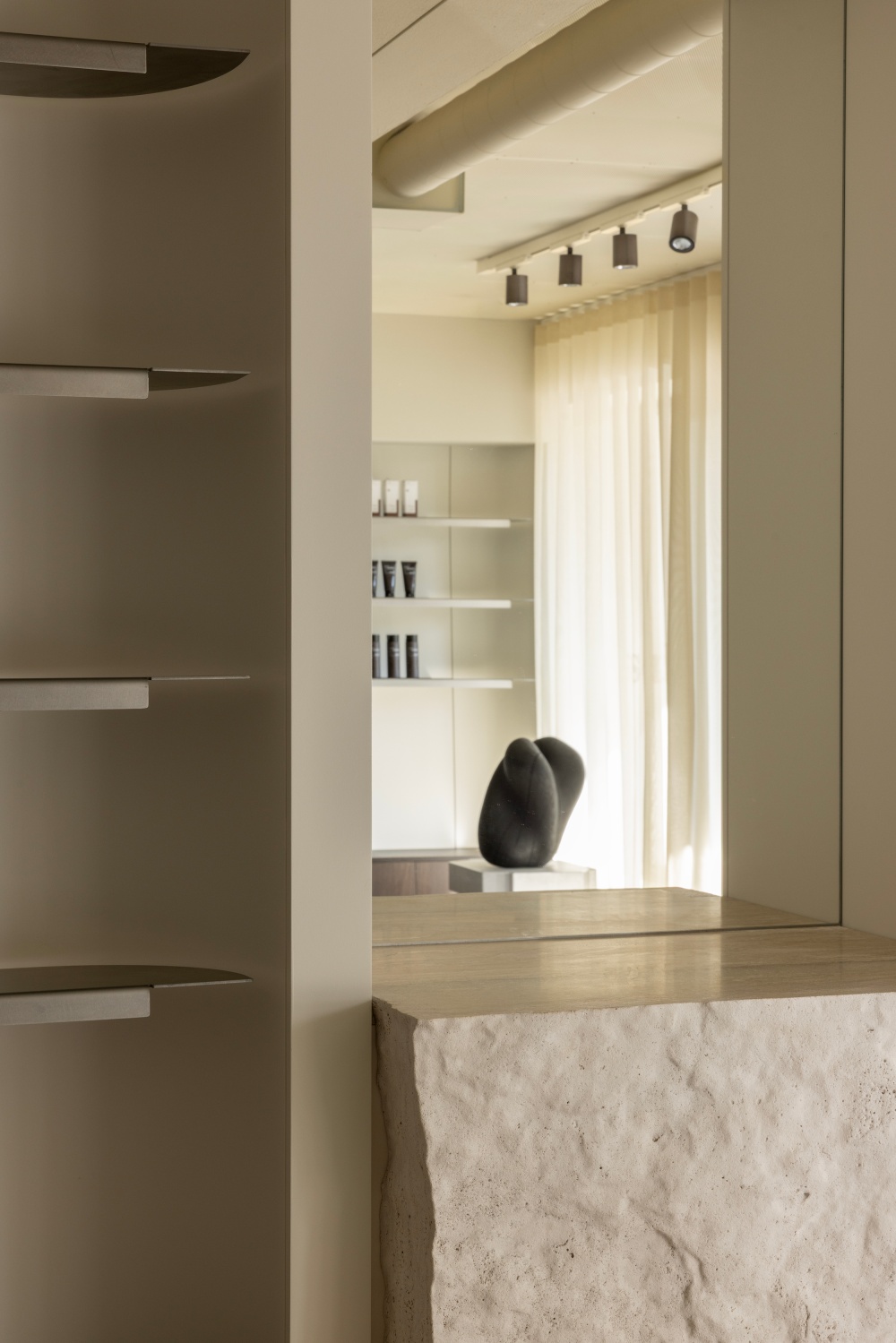 这一愿景与两家设计工作室的共同理念高度契合。作为长期聚焦“人文体验与材质表现力”的设计团队,他们坚信“建筑空间能影响人的身心状态与健康感受”,并将“感官调节”作为设计核心——光线、阴影、声学效果、触感体验与空间尺度,都是打造“有温度、有意义”空间的关键要素。HHVN由此成为双方理念的具象载体,旨在构建一个“既适配先进护肤科技,又保留人际温度”的独特场域。