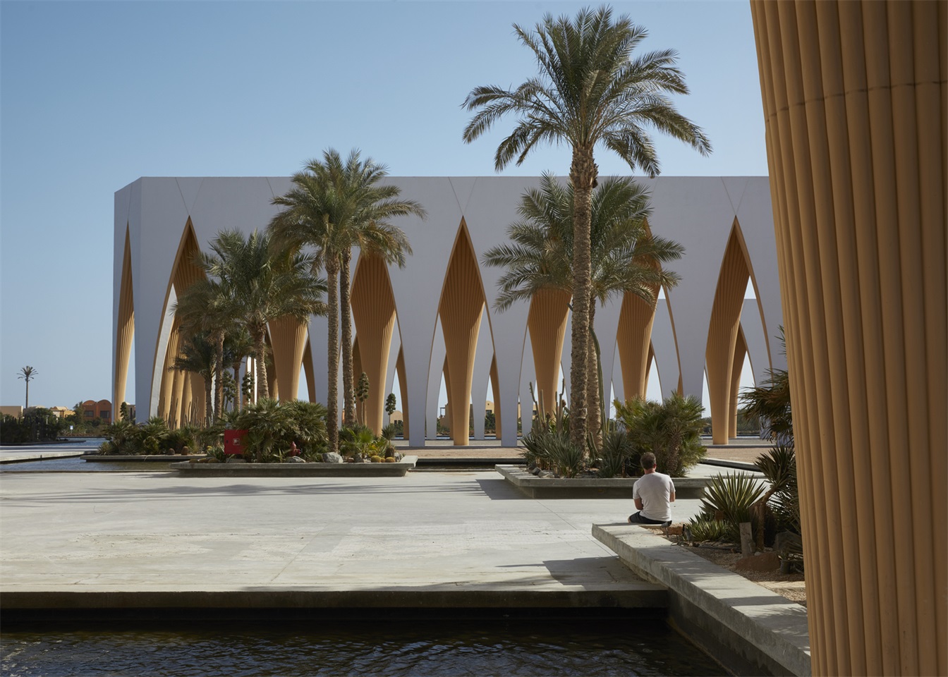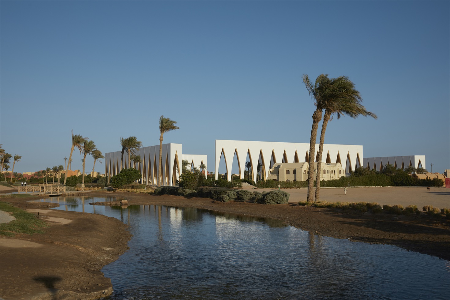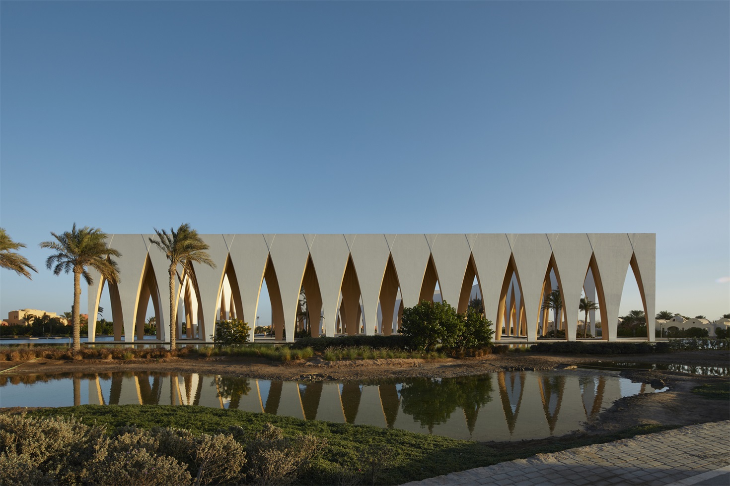 由西勒恩工作室(Studio Seilern Architects,简称 SSA)设计的会议中心,红海建筑公司(Red Sea Construction)与奥拉斯科姆建筑工业公司(Orascom Construction Industries,简称 OCI)为埃及奥拉斯科姆开发公司(Orascom Development Egypt)打造的古纳会议文化中心,是埃及古纳一处令人瞩目的场所。