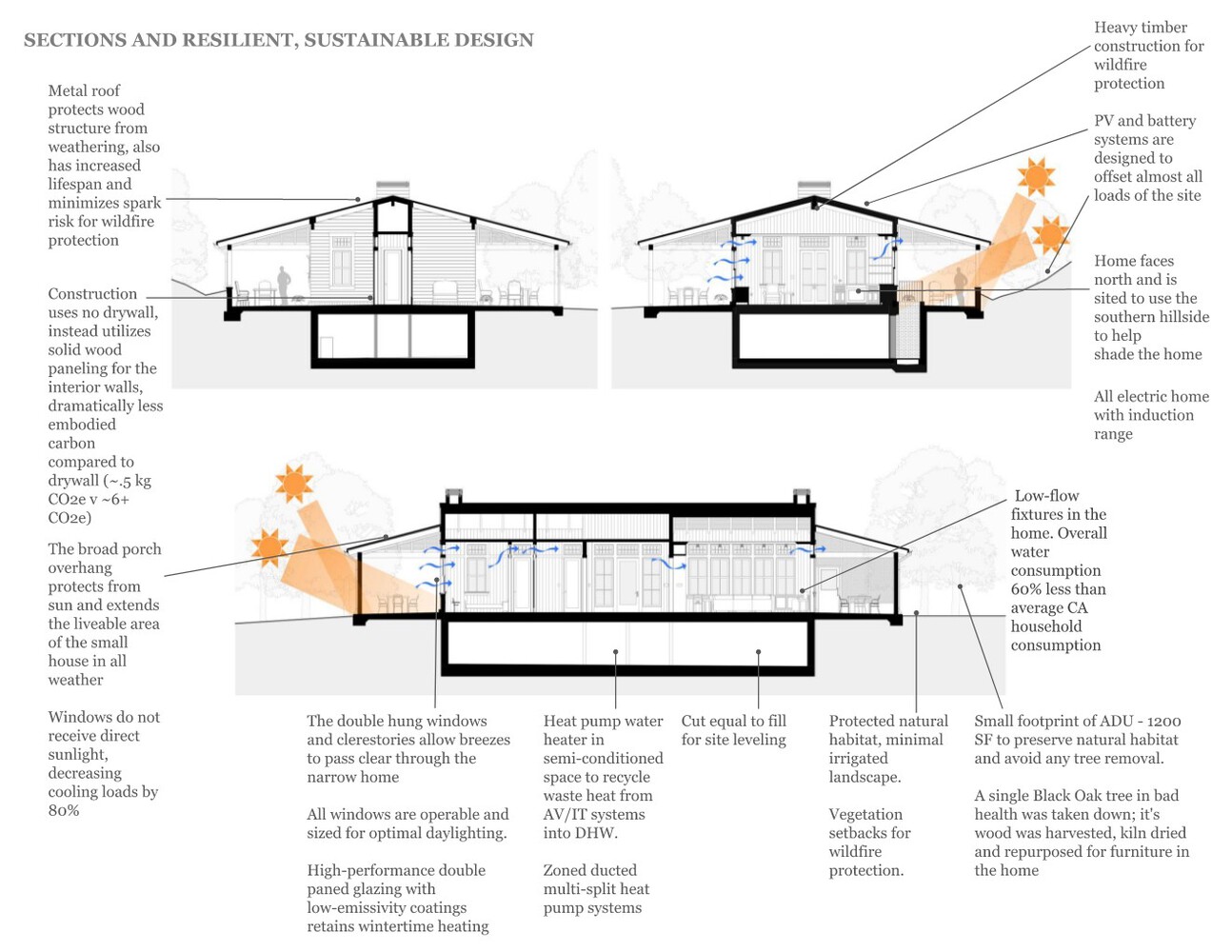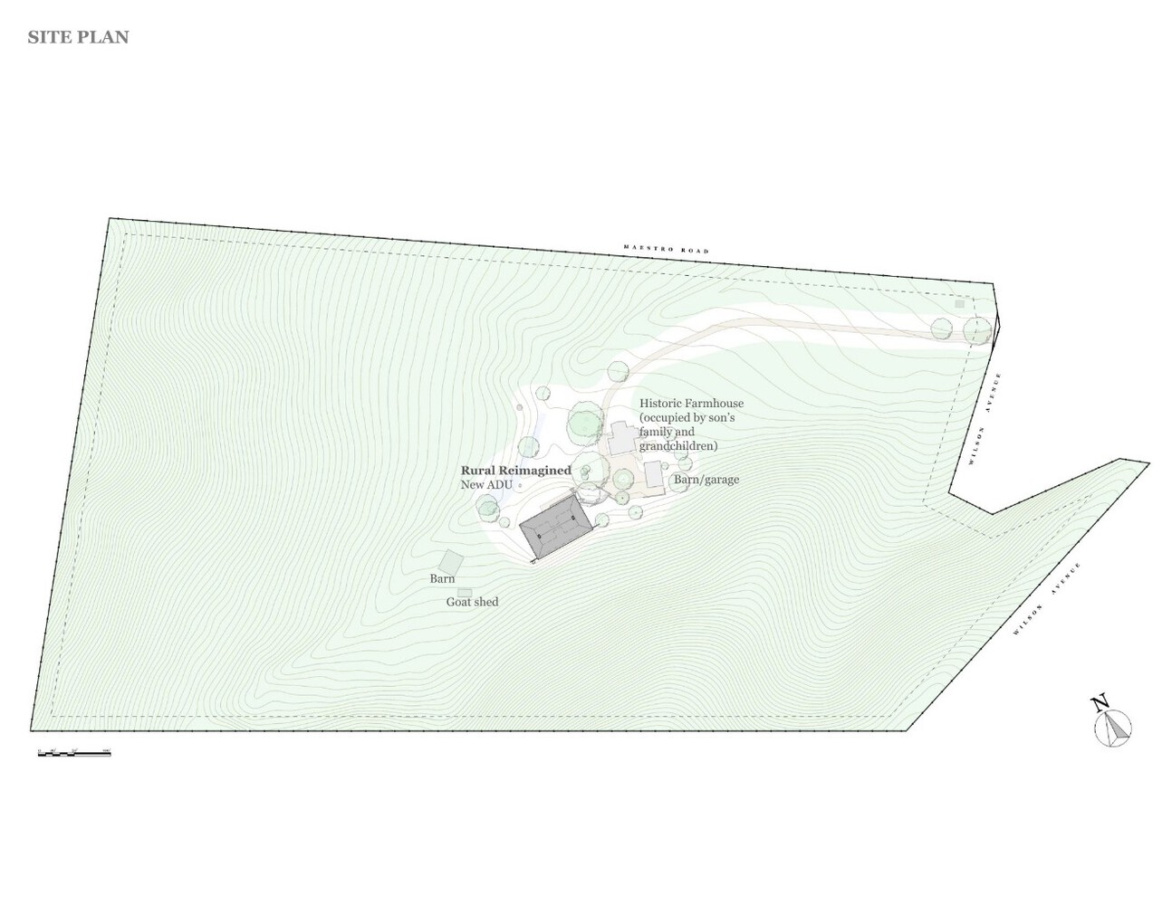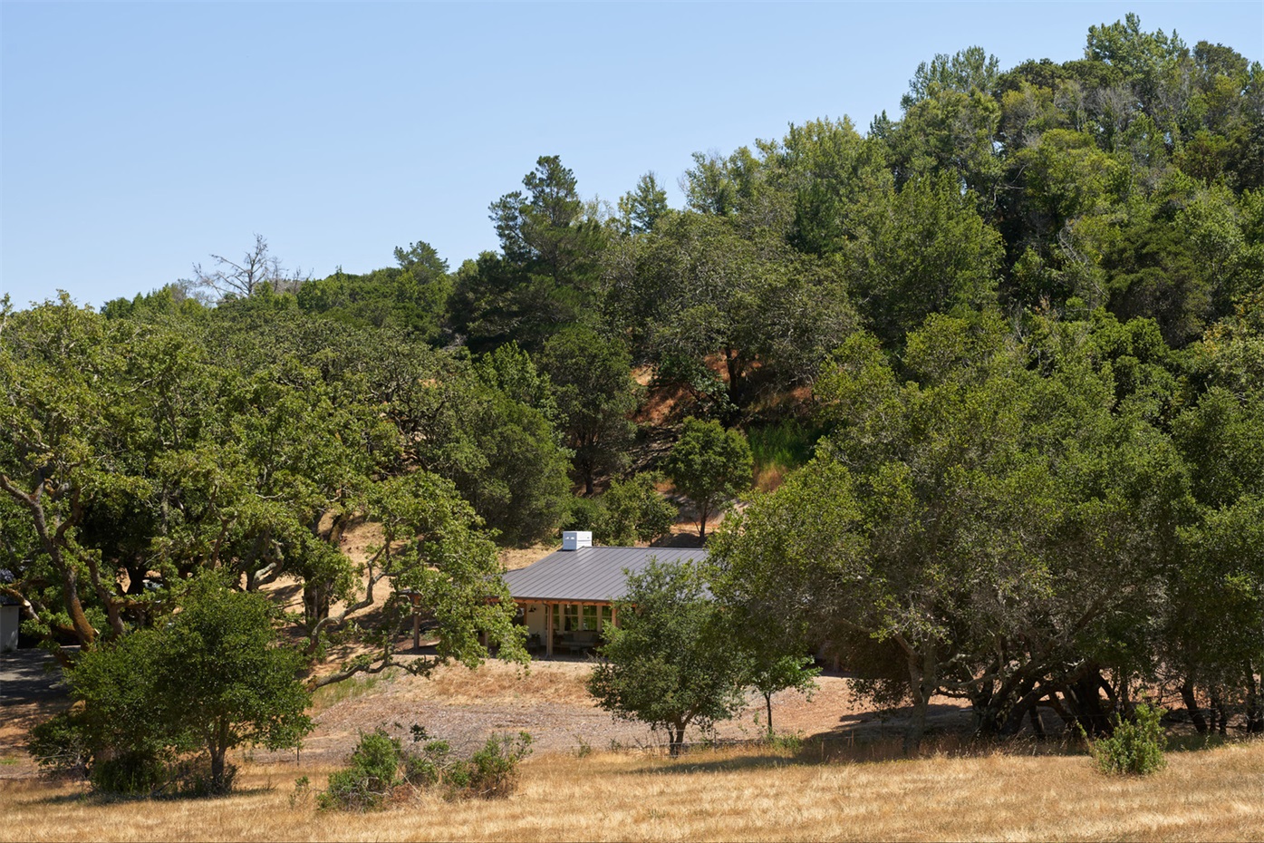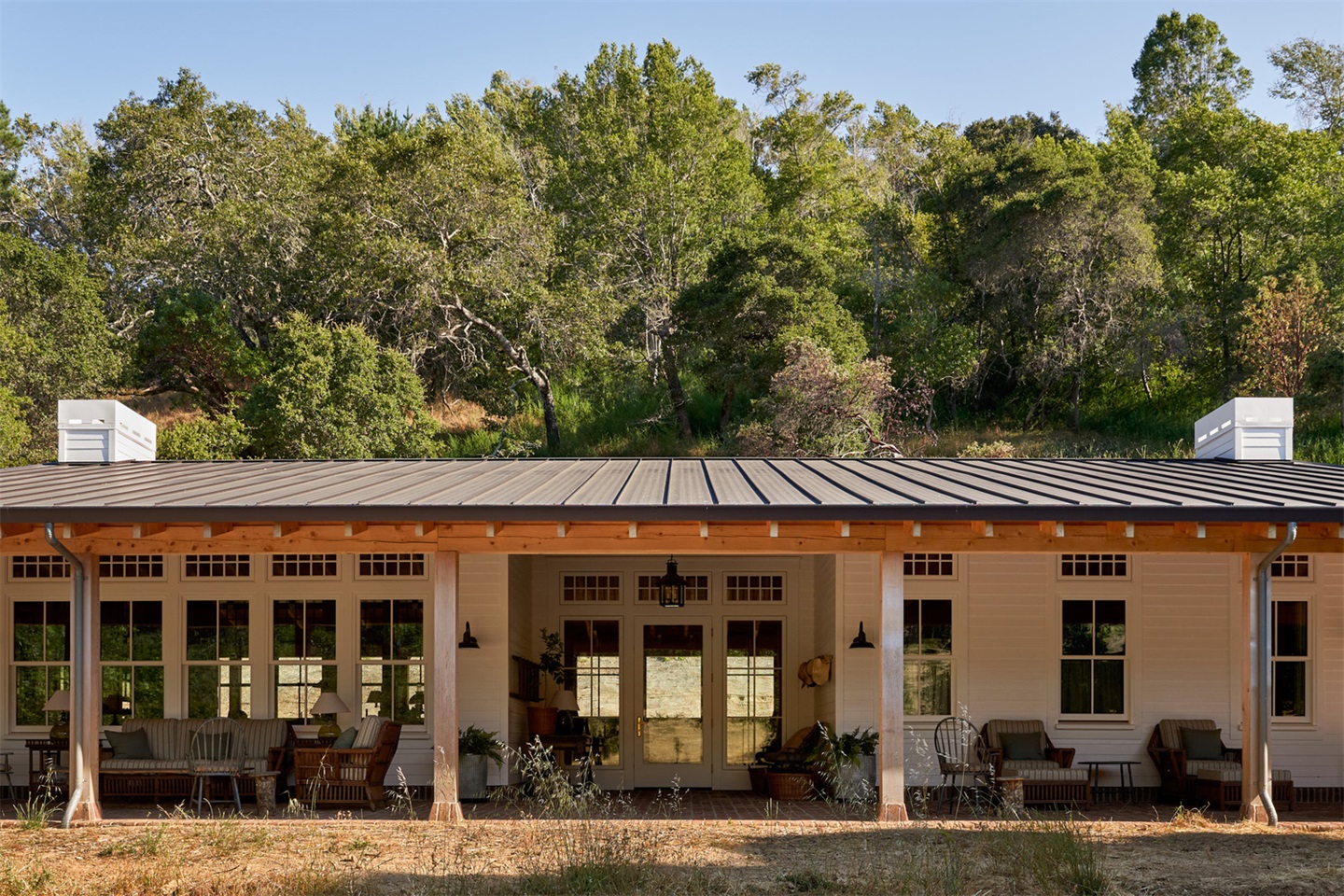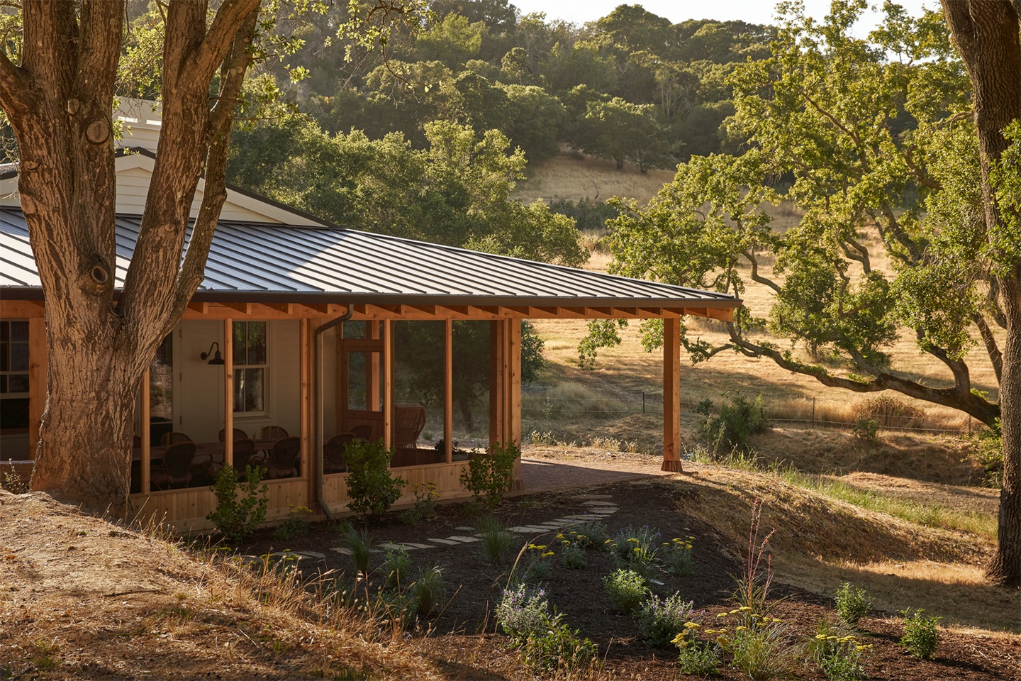 这座新建农舍乡村住宅设计旨在拥抱阳光明媚的北加州查帕拉尔景观,坐落于纳帕谷和索诺玛谷之间,追溯着该地区的根源。在 13 英亩农田的两座山丘之间,一座舒适多功能的单层附属住宅(ADU)拔地而起,其居住体验远超 1200 平方英尺的实际面积。业主是一对来自帕洛阿尔托的退休夫妇,他们渴望更小的居所与更慢的生活节奏,于是决定在这片起伏的土地上建造新居 —— 他们的长子一家正居住在这片土地上的一栋百年两层农舍里。