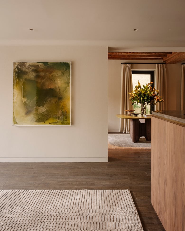 步入大堂,卡拉・塔鲁埃拉(Carla Tarruella)创作的深鹿绿色画作便映入眼帘,为接待区和休息区奠定了基调 —— 这里的设计旨在营造家一般的温暖氛围。空间内铺设了娜妮・马克纳(Nani Marquina)地毯,摆放了受 20 世纪 50 年代风格启发的亚麻沙发,以及丝面背板橱柜,所有物件均采用柔和的大地色调,既散发着舒适感,又彰显出对细节的精心雕琢。