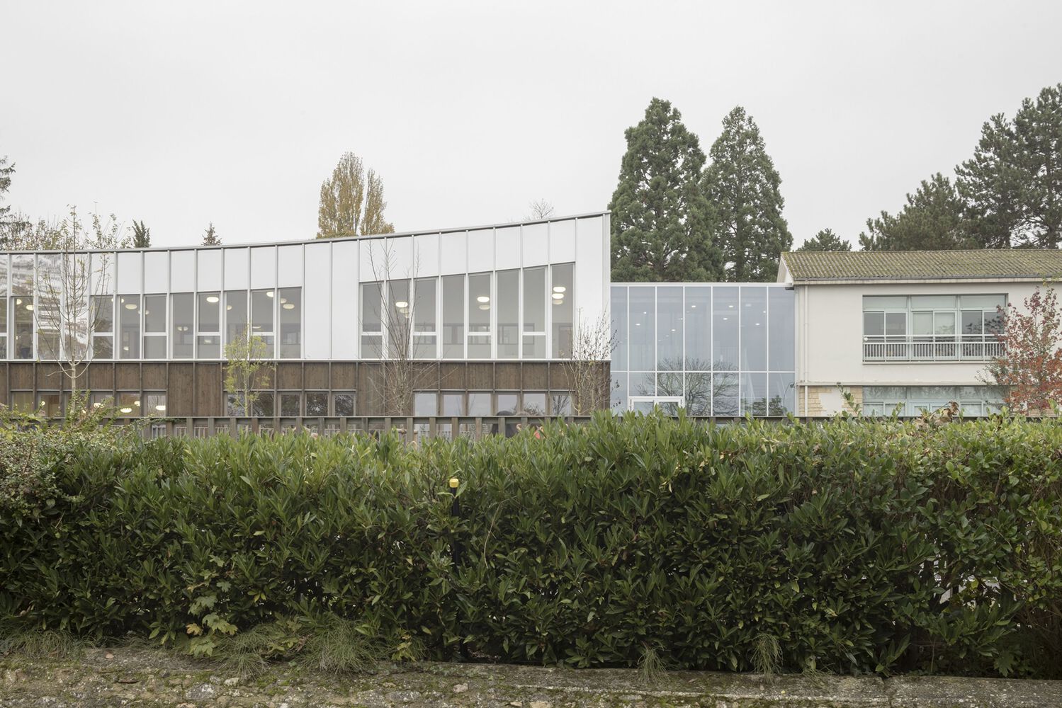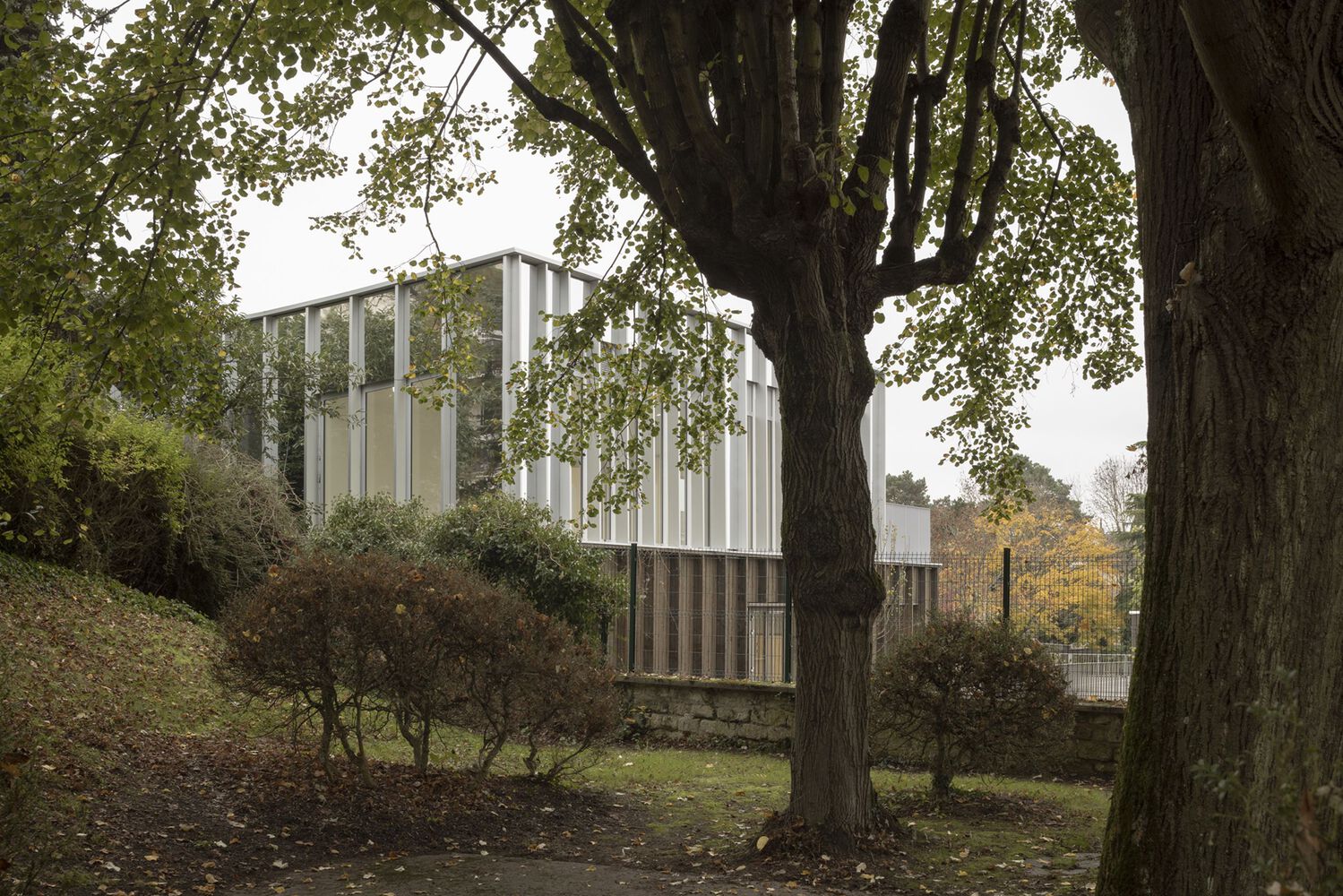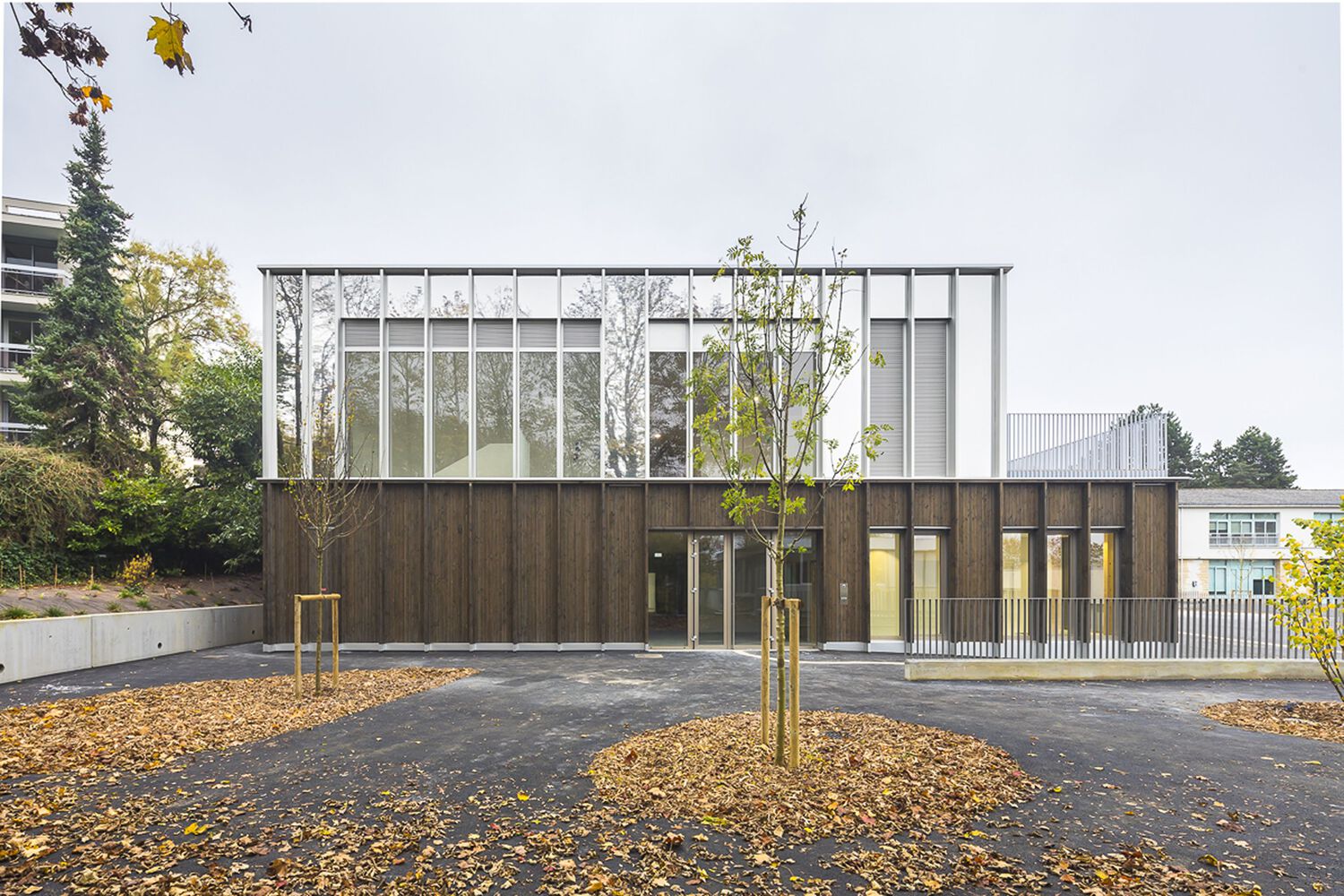 幼儿园、小学的六间教室扩建部分,以及一个休闲中心学校设计。建筑面积:2000 平方米。预算:710 万欧元。“紫罗兰” 学校综合体是马雷勒 – 马利村中的一个 “小村庄”。该场地位于城镇的高处,周边有许多引人注目的树木,并且向西可一览巴黎大都市区的开阔景致,远处可以看到拉德芳斯的高楼大厦。现有的建筑拥有不同时期的多样建筑风格,它们坐落在树木和绿植之间,为孩子们提供了优越的环境。HEMAA 设计了一所花园式学校,保留并提升了这一自然环境的品质。建筑采用木材和玻璃的材料组合,与树木的枝叶交相辉映,而空间布局则强调建筑体量之间的通透感以及对天空的开放感。